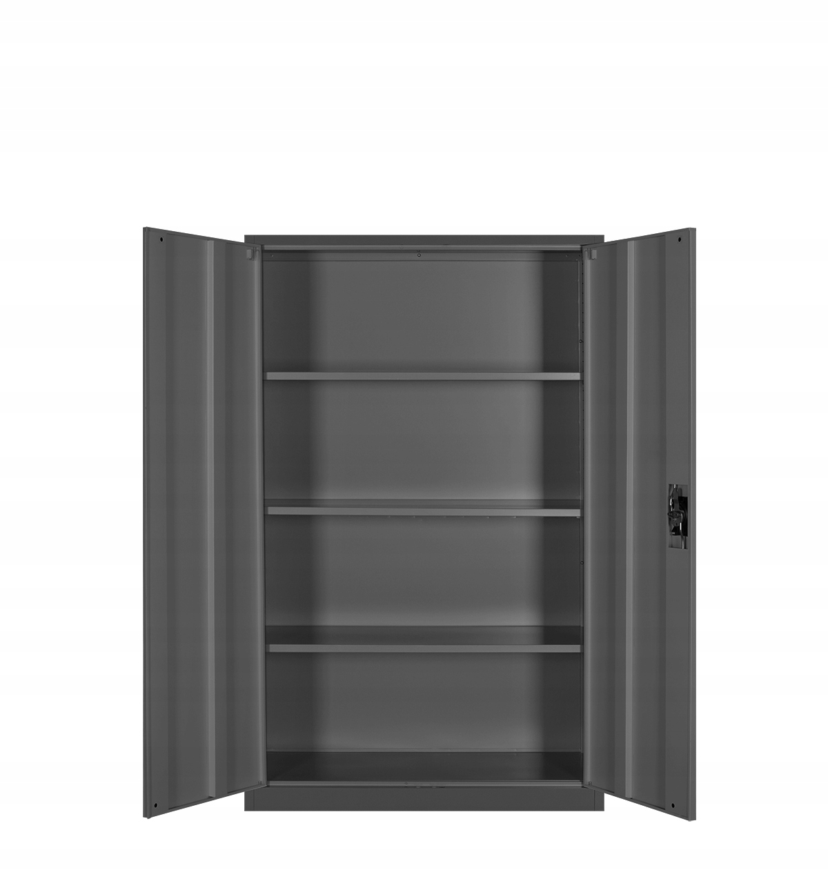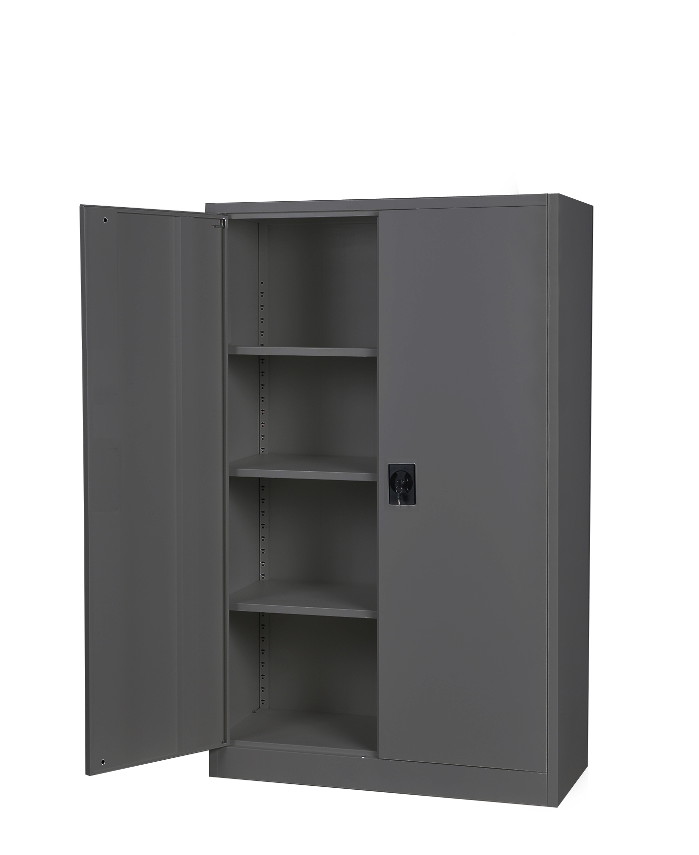Шкаф оснащен 3 устойчивыми полками. На каждую полку можно загрузить вес до 50 кг (при равномерном распределении нагрузки). Прочная и устойчивая конструкция шкафа в сочетании с качественным трехточечным замком обеспечивают защиту от несанкционированного доступа.