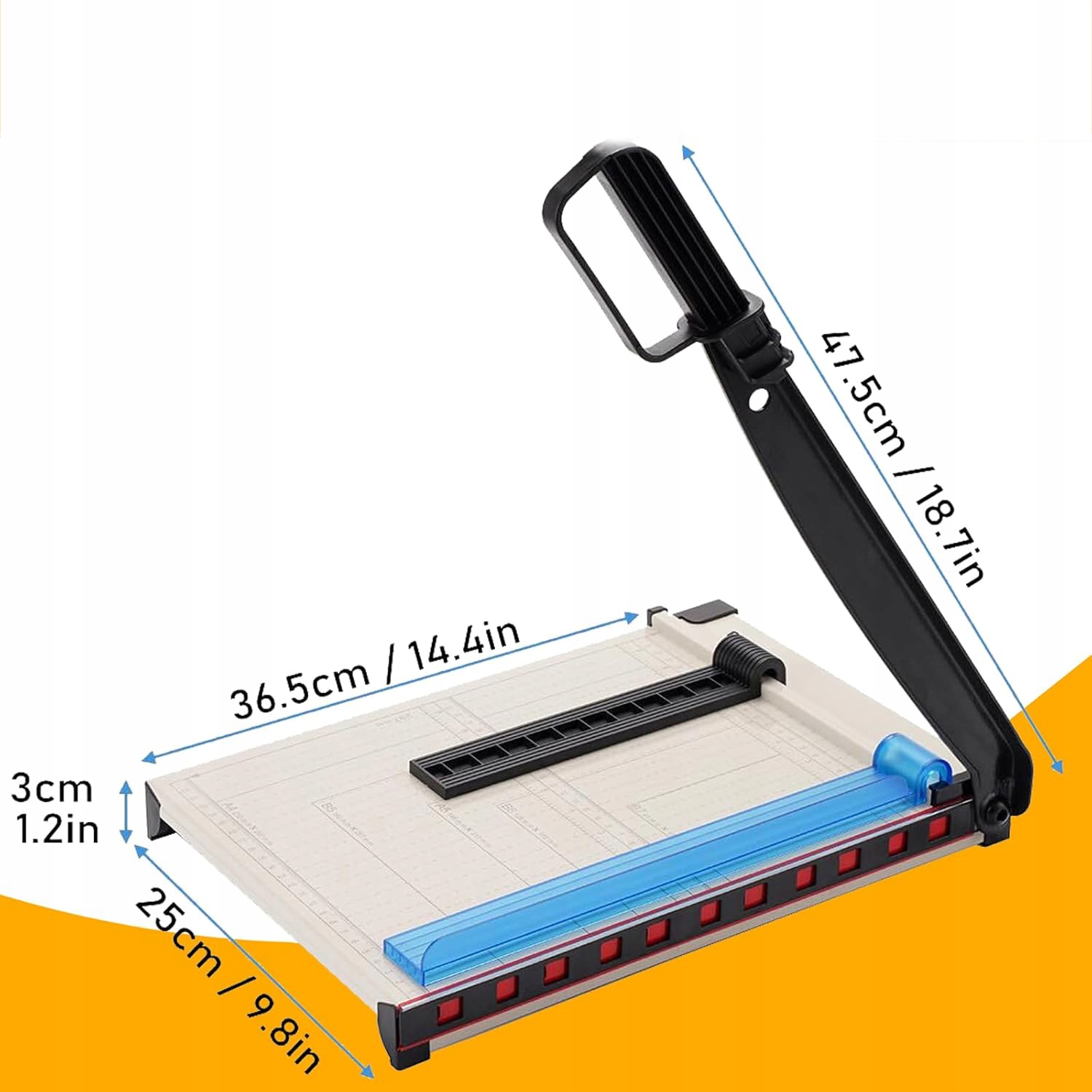 - Оснащенный шкалой мм/дюйм и магнитной направляющей, он может точно направлять положение бумаги, обеспечивая точность резки. Подходит для бумаги форматов A4, A5, B5 и B6. Он может разрезать до 15 листов печатной бумаги за раз.