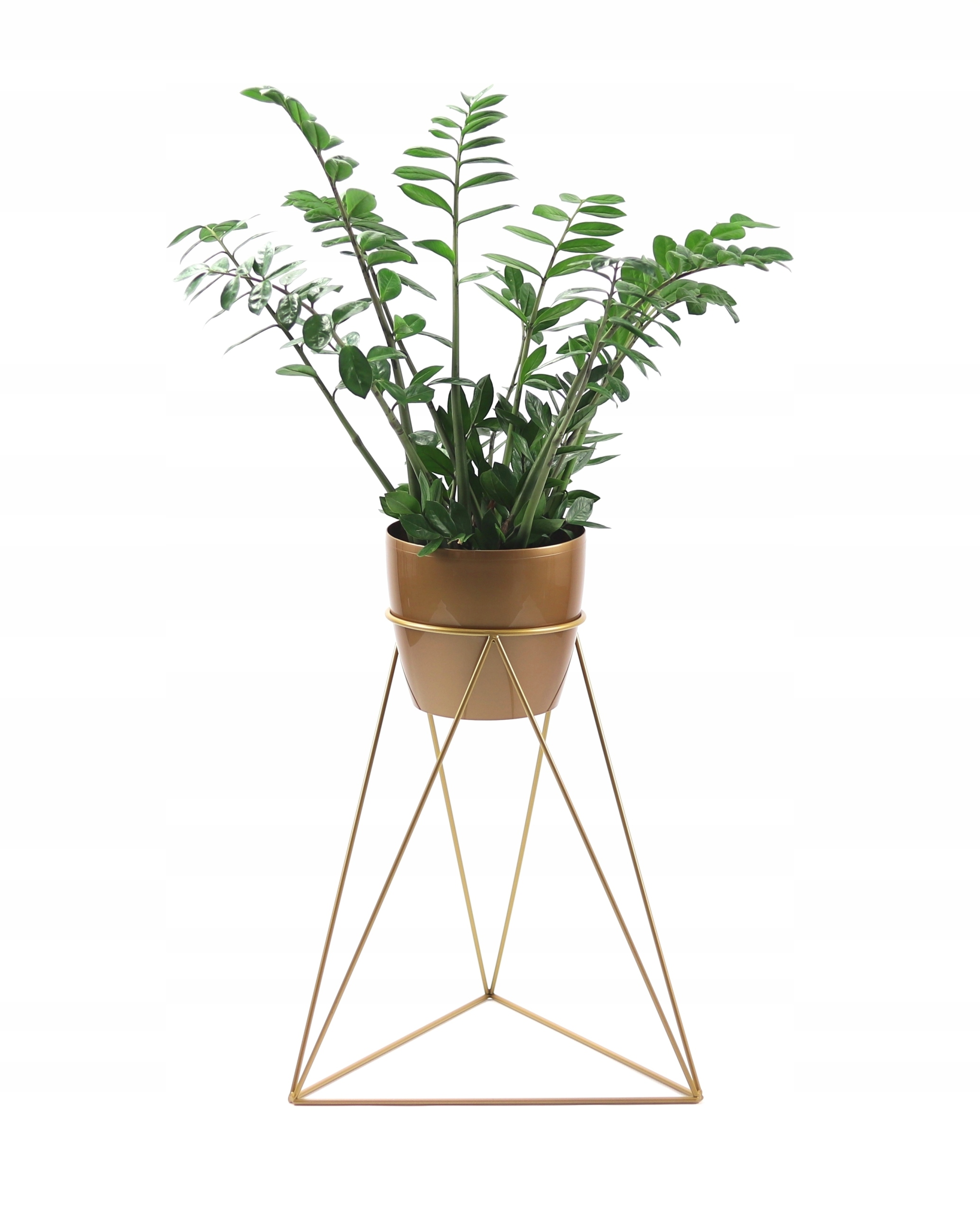 - Конструкция подставки для цветов изготовлена из стальной проволоки диаметром 8 мм, а затем покрыта золотой порошковой краской. полуматовый оттенок.