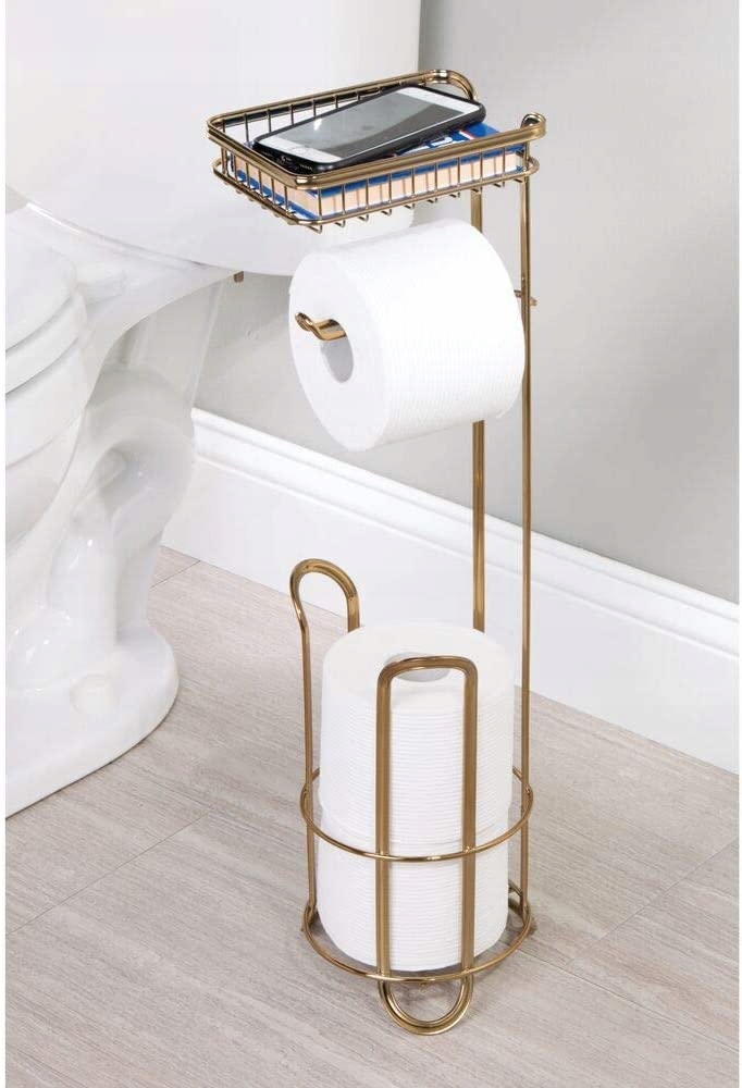 - МНОГОФУНКЦИОНАЛЬНАЯ ДИЗАЙН: Металлическая подставка для туалетной бумаги имеет держатель для одного рулона туалетной бумаги и место для хранения двух рулонов. запасные рулоны. Оснащена дополнительной полкой для мелочей.