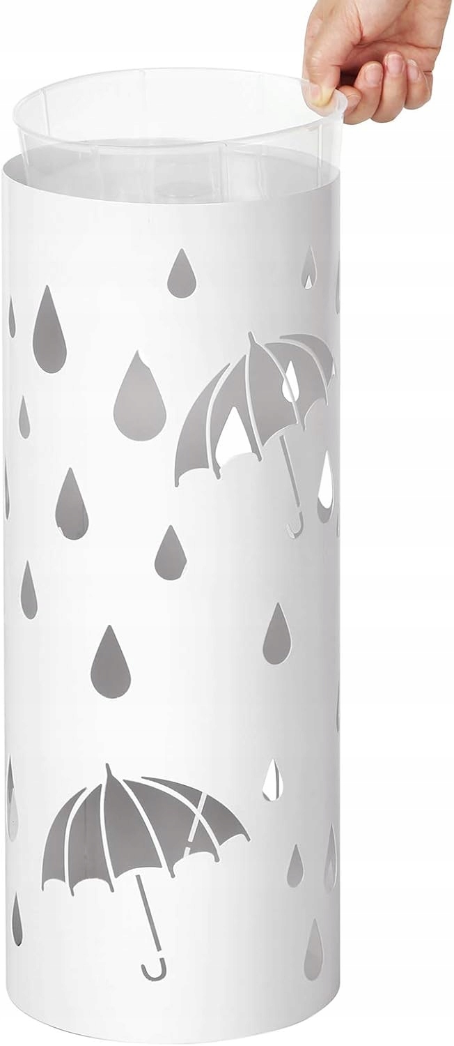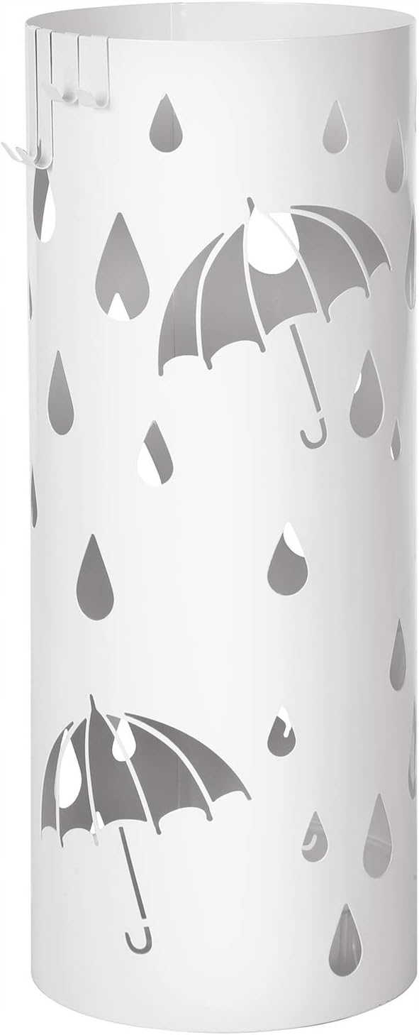 Элегантный полностью белый дизайн со стильными каплями дождя и отверстиями в форме зонтика придает стойке современный вид и привлекает внимание в любом коридоре или холле.