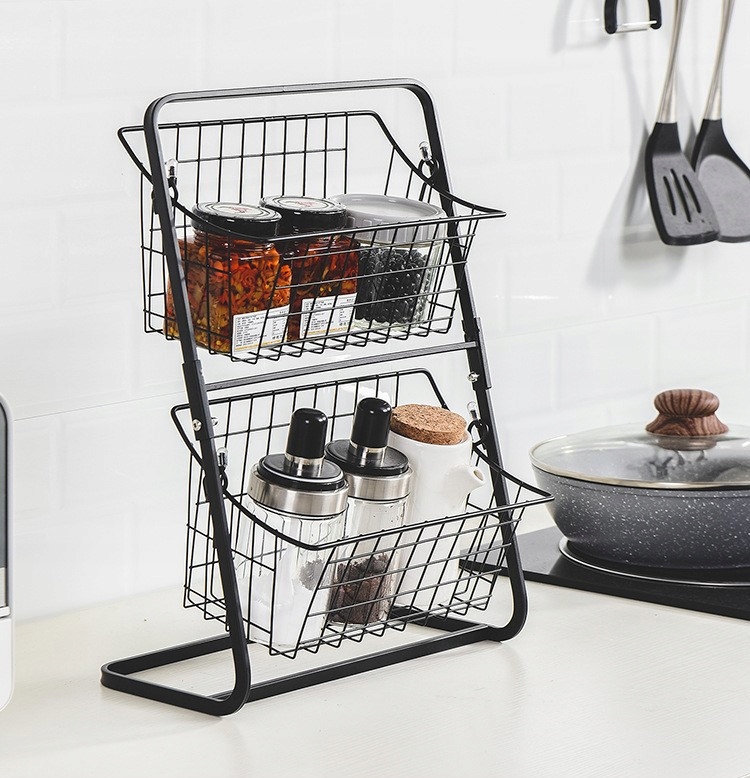 Практичный и стильный двухъярусный стеллаж с металлическими корзинами — идеальное решение для хранения вещей на кухне, в ванной, кладовой или на столешнице. Изготовленный из прочного металла, он обеспечивает устойчивость и современный вид, подходящий к любому интерьеру.