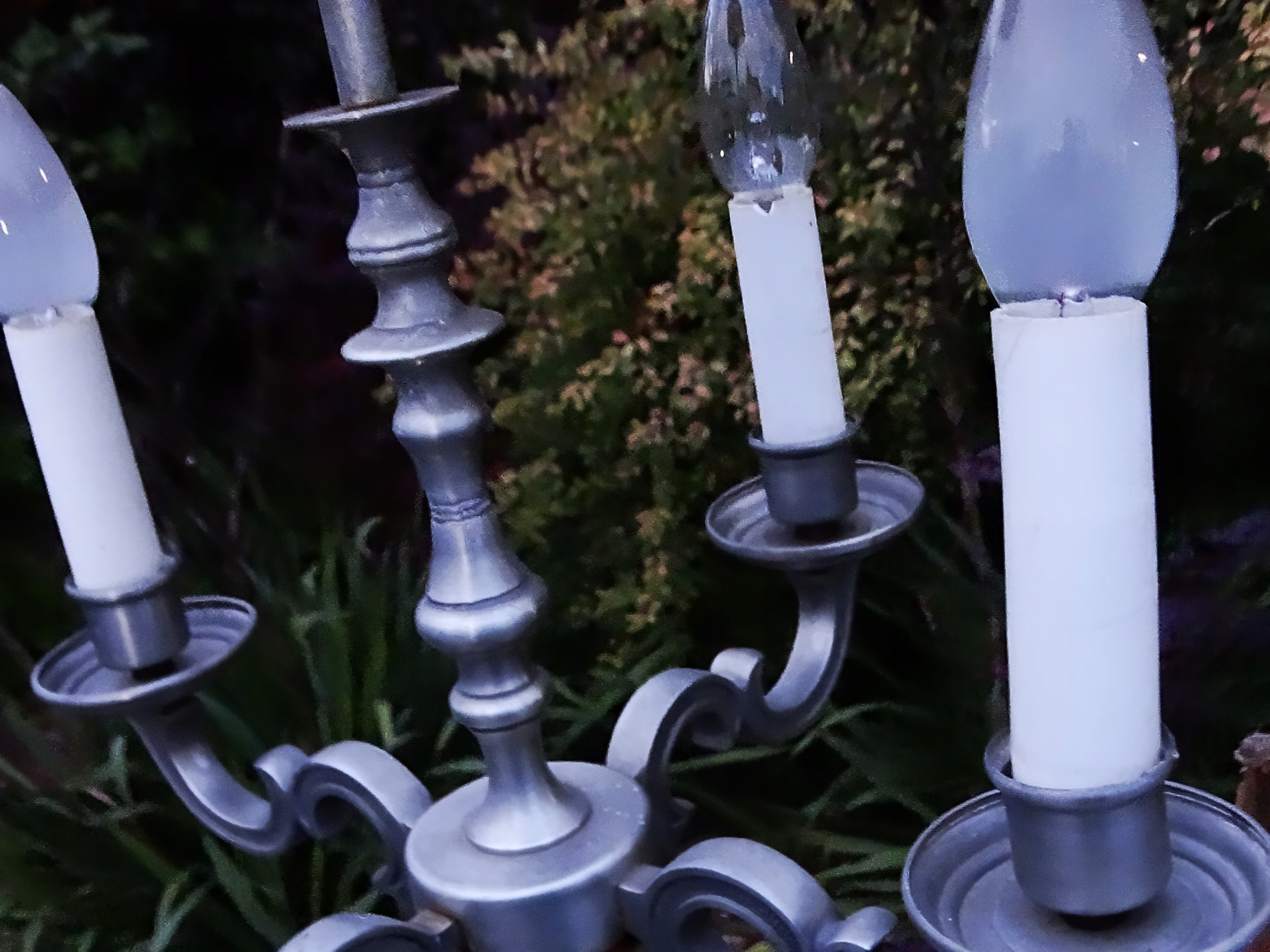 - Количество источников света: 4 кронштейна со свечными лампочками