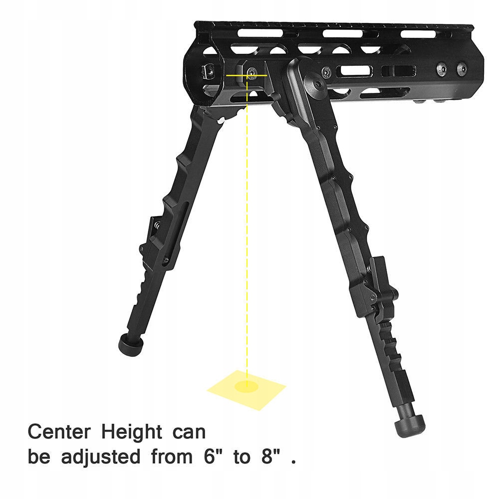 С помощью кнопки освобождения ножки вы можете отрегулировать центральную высоту сошки от 6 до 8 дюймов. 5 настроек для различной длины, сошки готовы удовлетворить ваши потребности.