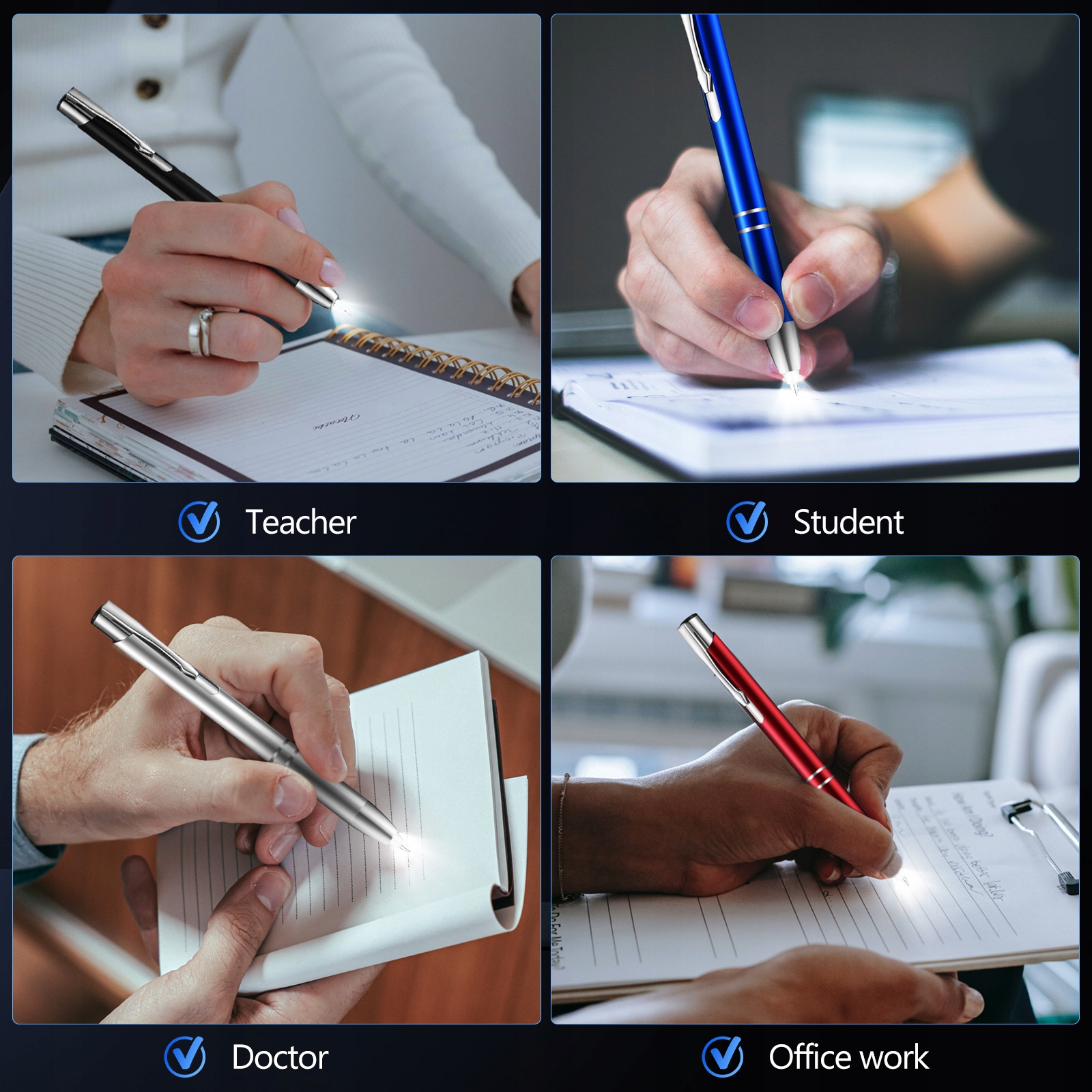 ✅Несколько цветов: эта светодиодная ручка выпускается в четырех разных цветах, что дает вам множество вариантов на любой вкус и случай.
