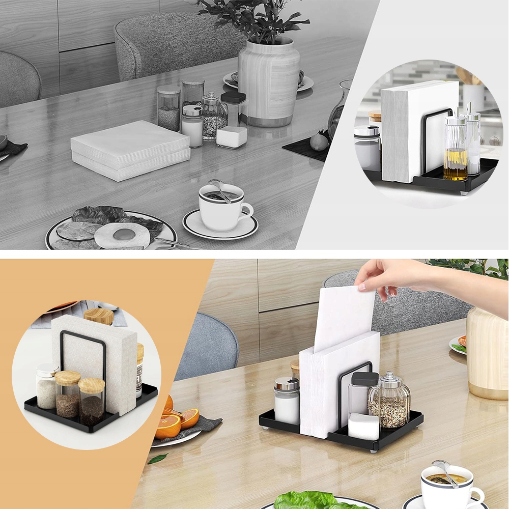 Эта черная салфетница подойдет не только для обеденных столов и кухонных столешниц, но также станет идеальным помощником в офисе для организации почты и документов. Он чрезвычайно удобен, идеально подходит для кемпинга и пикников, а также вмещает в себя салфетки, специи и даже цветы или чашки.