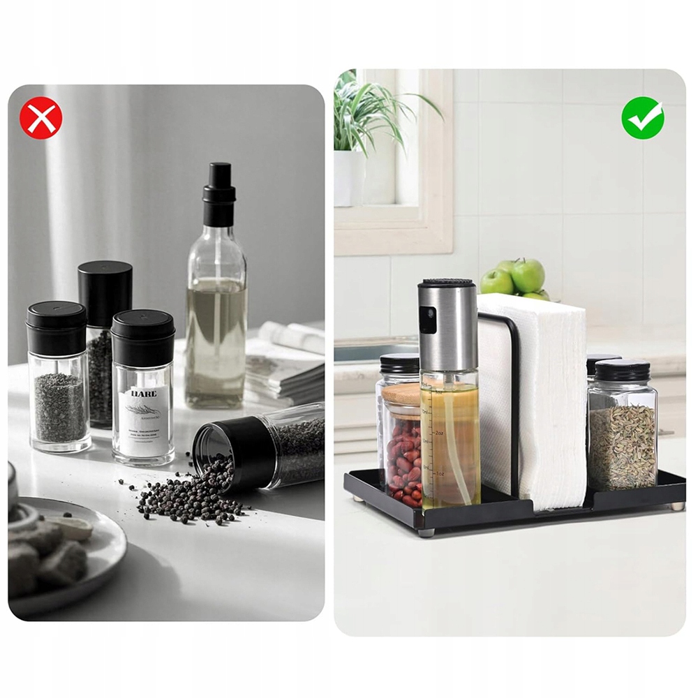 Подставка для салфеток была улучшена с 10 см до 14 см, поэтому в нее можно вместить салфетки большинства размеров. На боковых полках также можно разместить бутылки для специй диаметром до 8 см. По сравнению с плоскими диспенсерами для салфеток вертикальная конструкция экономит место на столе и облегчает быстрое удаление и добавление салфеток.