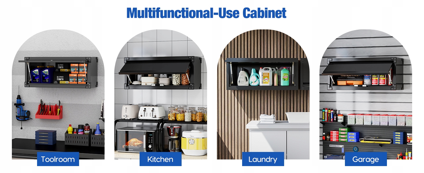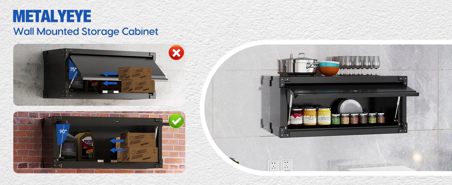 【Уникальный дизайн】Этот металлический настенный шкаф имеет откидную вверх дверцу. Дверца шкафа поддерживается гидравлическим опорным рычагом и может открываться на угол 90 градусов, что позволяет легко извлекать предметы. Легко открывать и закрывать, экономя место. Очень большое место для хранения, размеры: 30×80×38см.