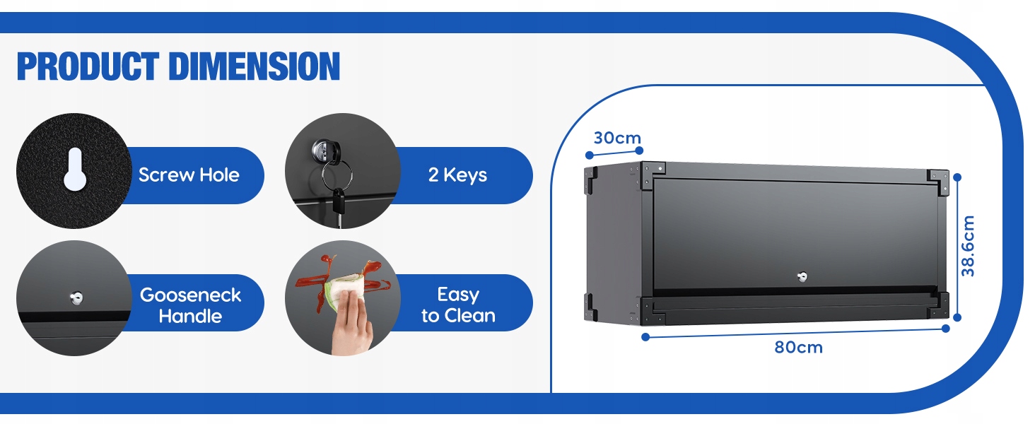 【Гладкая и плоская】Поверхность металлического навесного шкафа изготовлена из устойчивого к коррозии материала, она гладкая и плоская, легко чистится и протирается тканью.