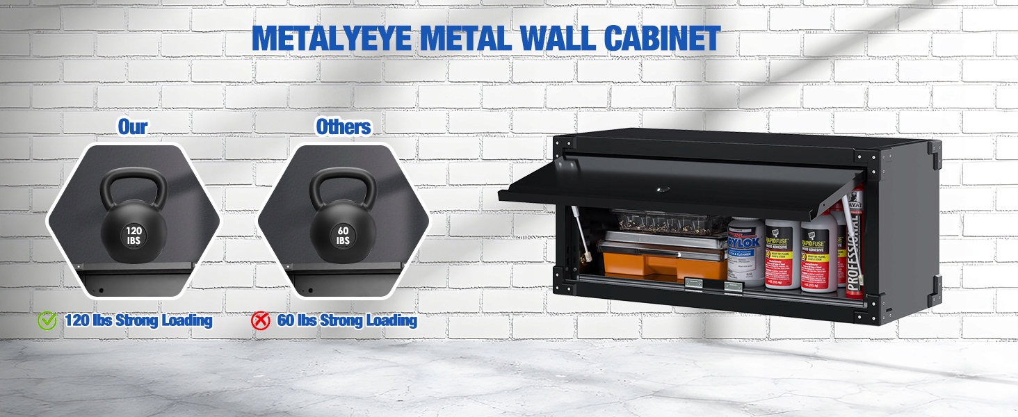 【Высококачественный материал】Металлический навесной шкаф для гаража изготовлен из холоднокатаного стального листа и имеет усиленную конструкцию, что делает металлический шкаф более стабильным и долговечным. Корпус имеет долговечное порошковое покрытие и фосфатирование для более прочного захвата. Грузоподъемность — до 120 фунтов.