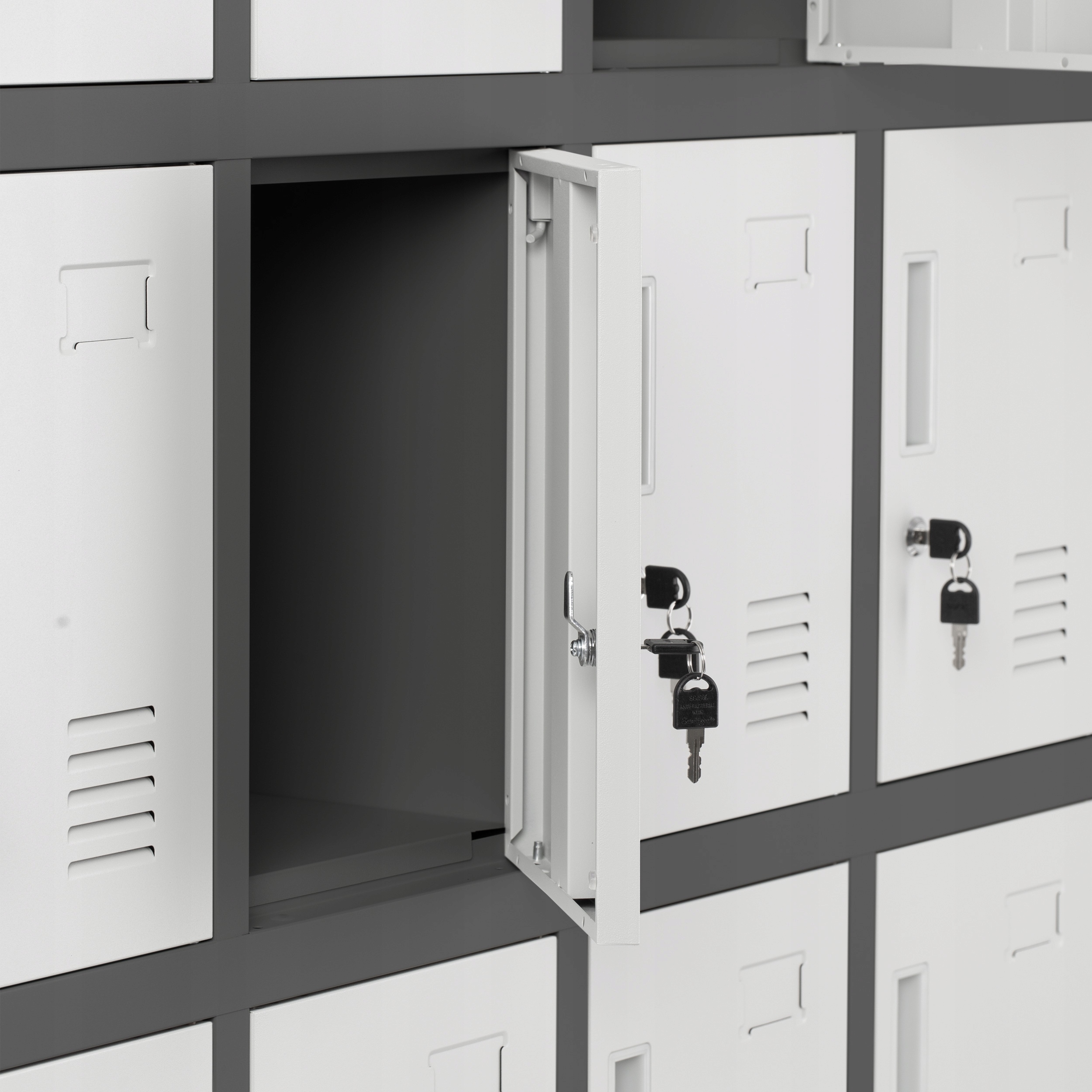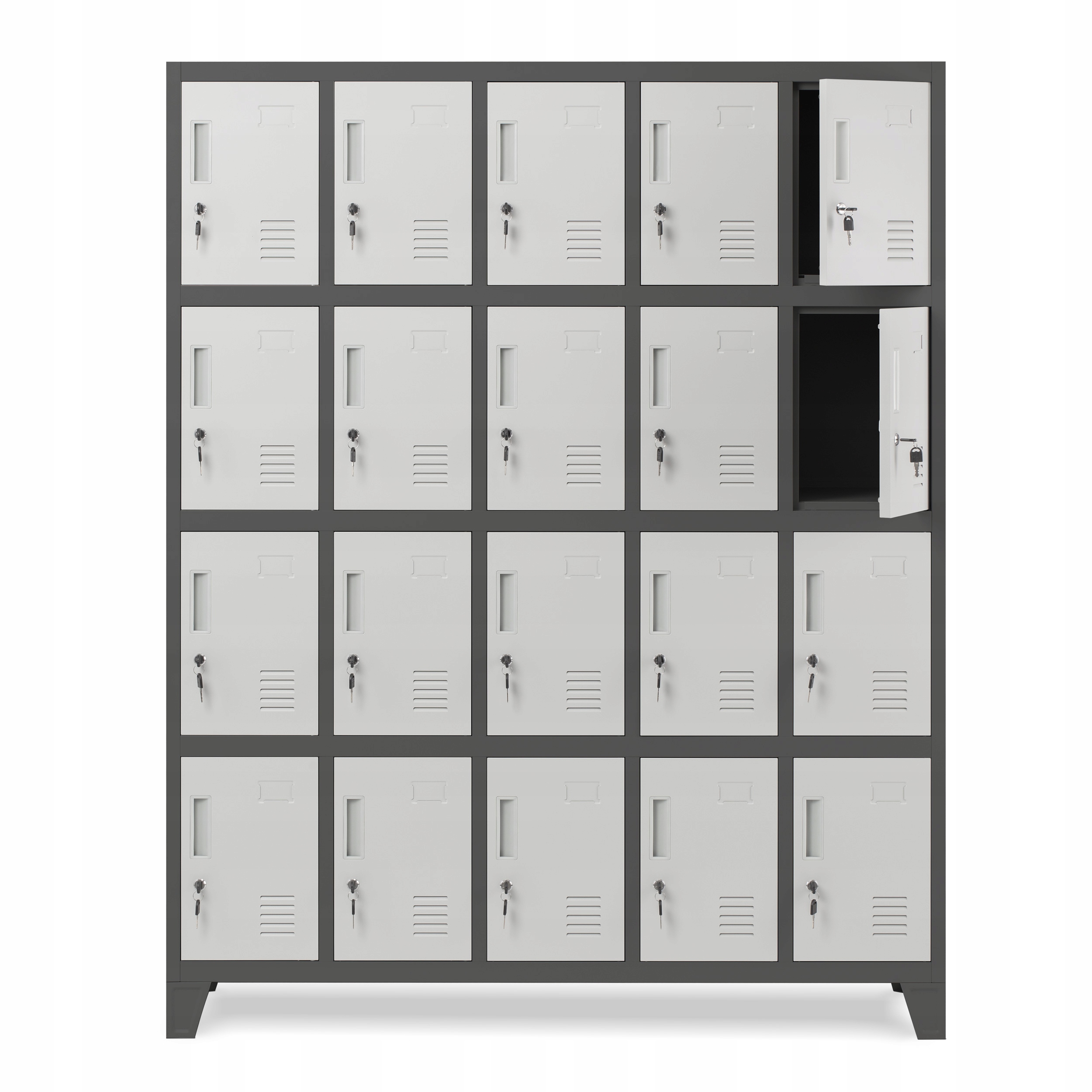 Металлический сейф ROBERT открывает перед вами большие возможности. В каркасе шириной 136 см, высотой 172 см и глубиной 45 см мы разместили целых 20 отсеков одинакового размера. Это очень удобное решение, которое позволит безопасно спрятать личные вещи, особенно в местах большого скопления людей.