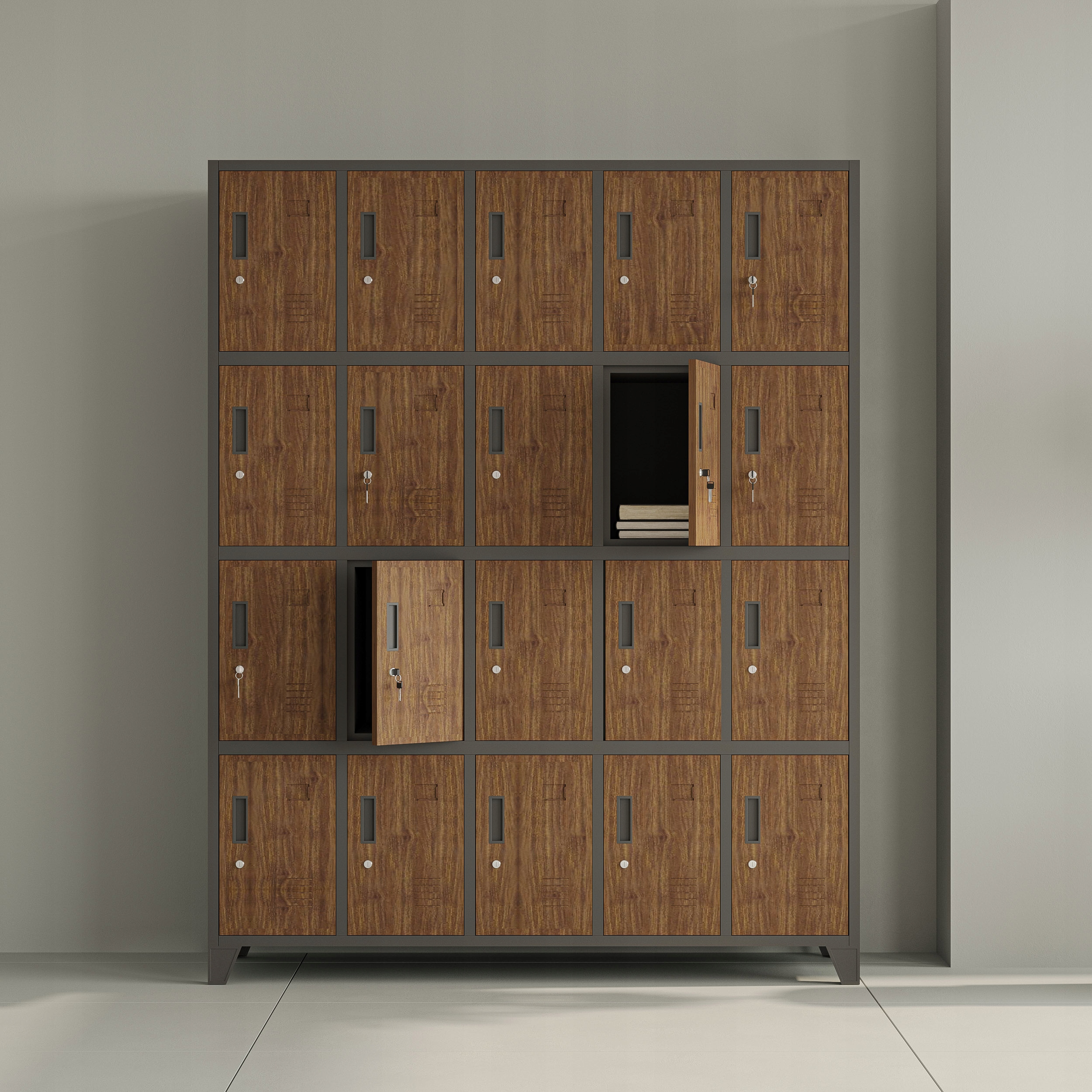 Компактный шкаф ROBERT имеет до 20 запирающихся отделений. Мы подготовили оригинальный вариант в стиле лофт. Модель имеет антрацитовую раму и дверцы, напоминающие древесину ореха. Это делает его отличным решением для людей, которые ценят уникальную функциональность в привлекательном исполнении.