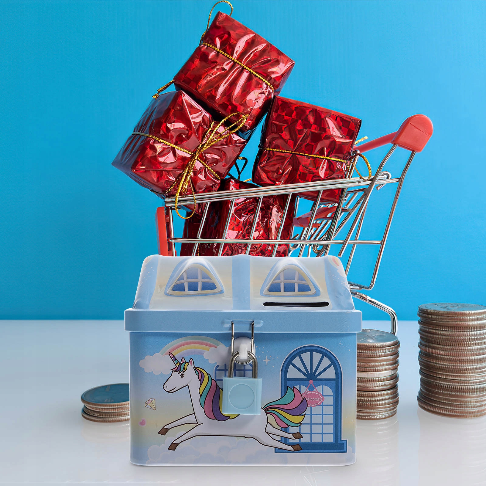 Металлическая копилка-единорог с замком — идеально подходит для монет