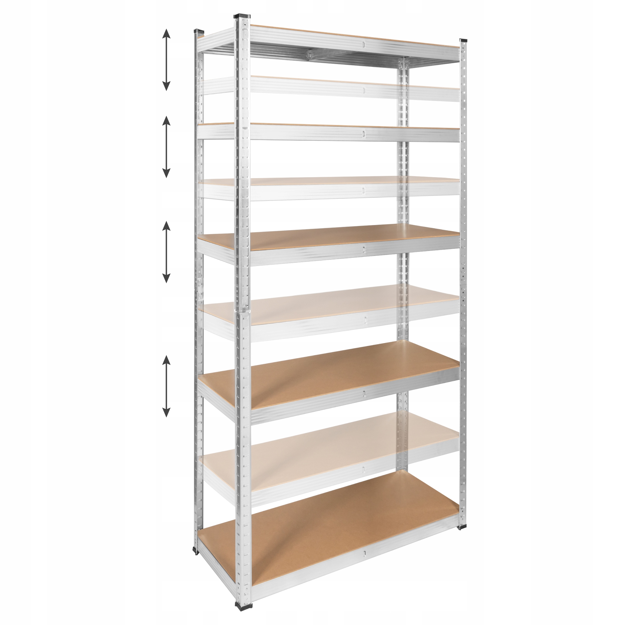 Полка оснащена 5 регулируемыми полками, что позволяет свободно конфигурировать пространство в мастерской или складе в зависимости от ваших потребностей. Вы также можете отрегулировать расстояние между полками, чтобы разместить предметы разного размера.