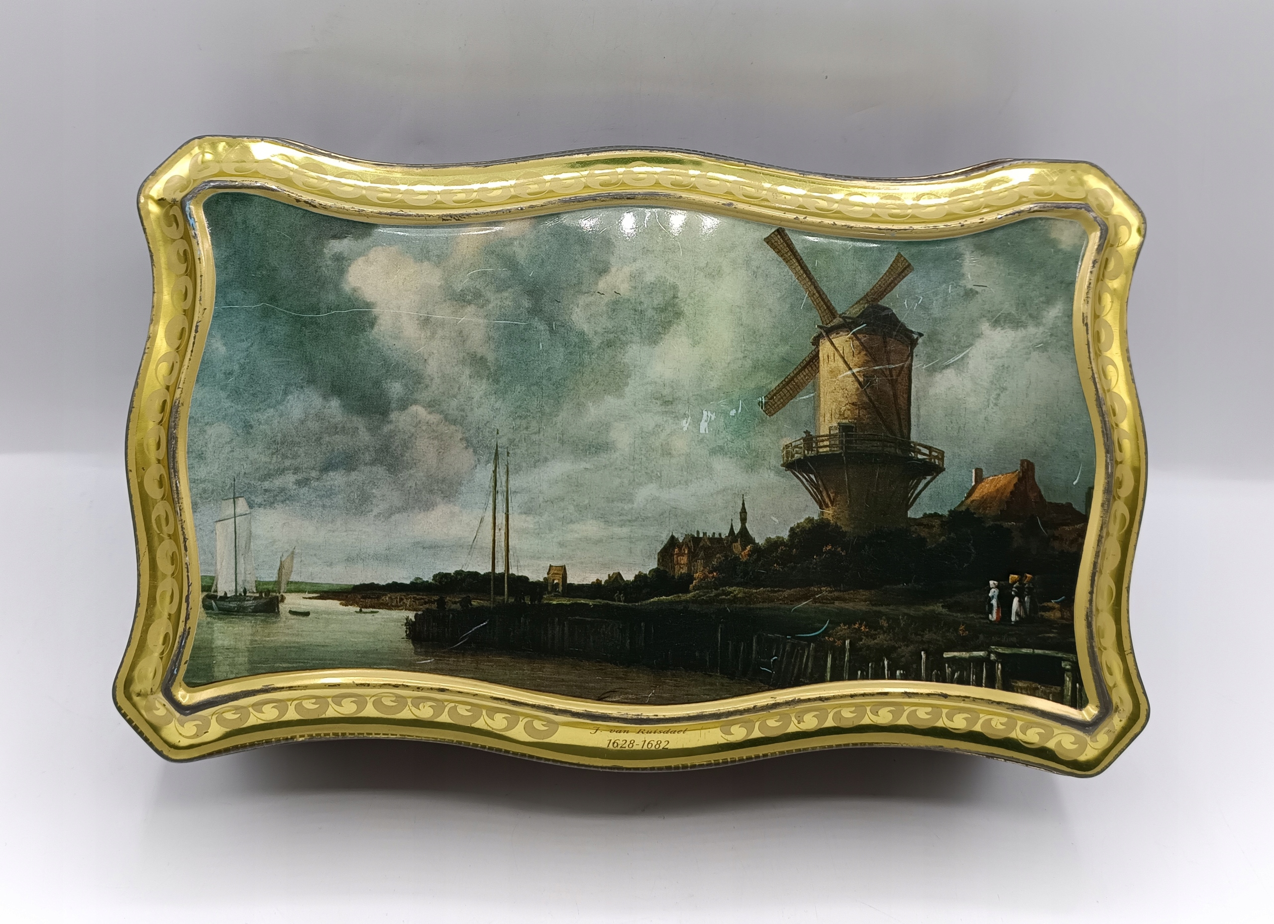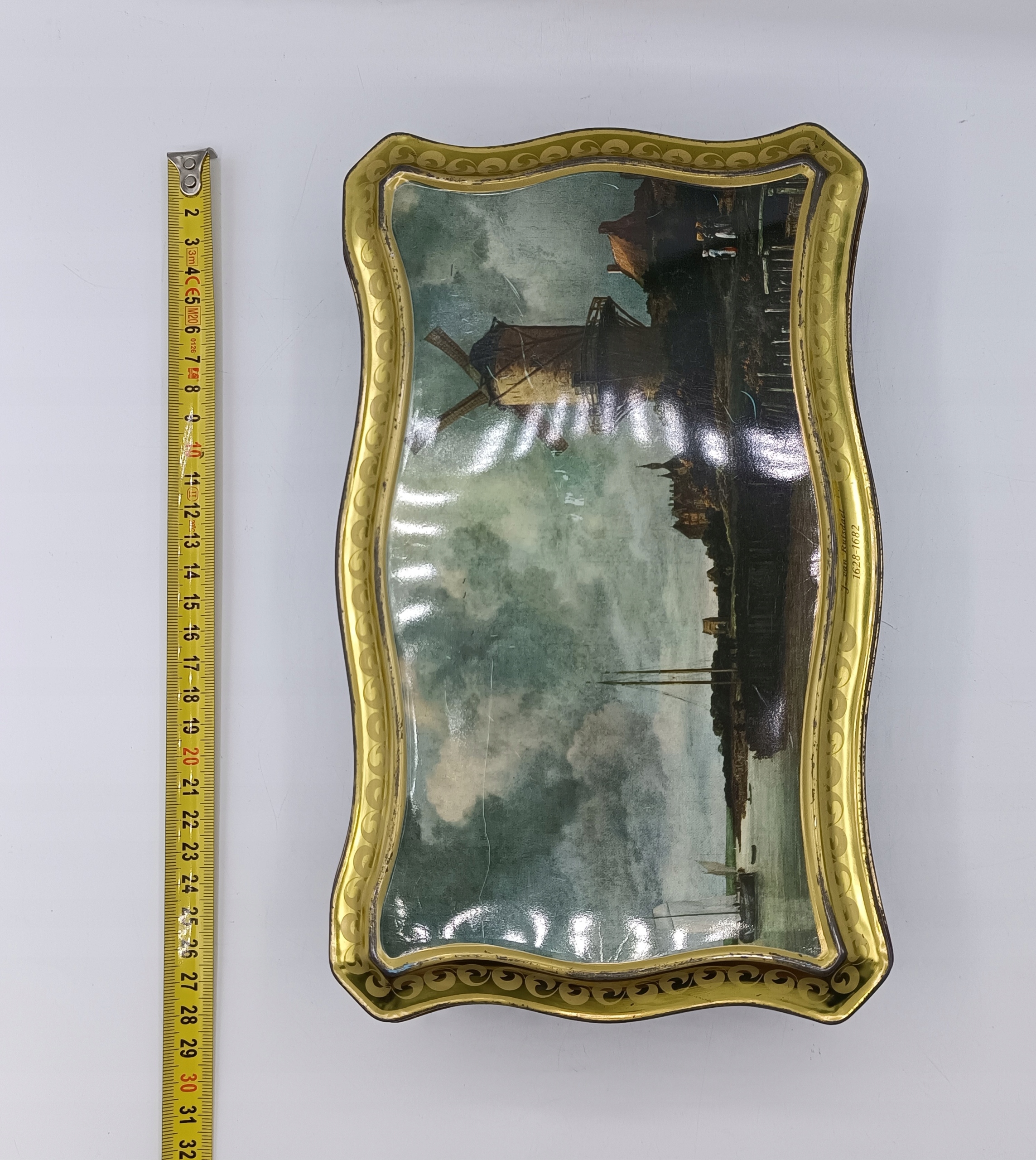 Металлическая винтажная банка с красивым пейзажем - 25 см.