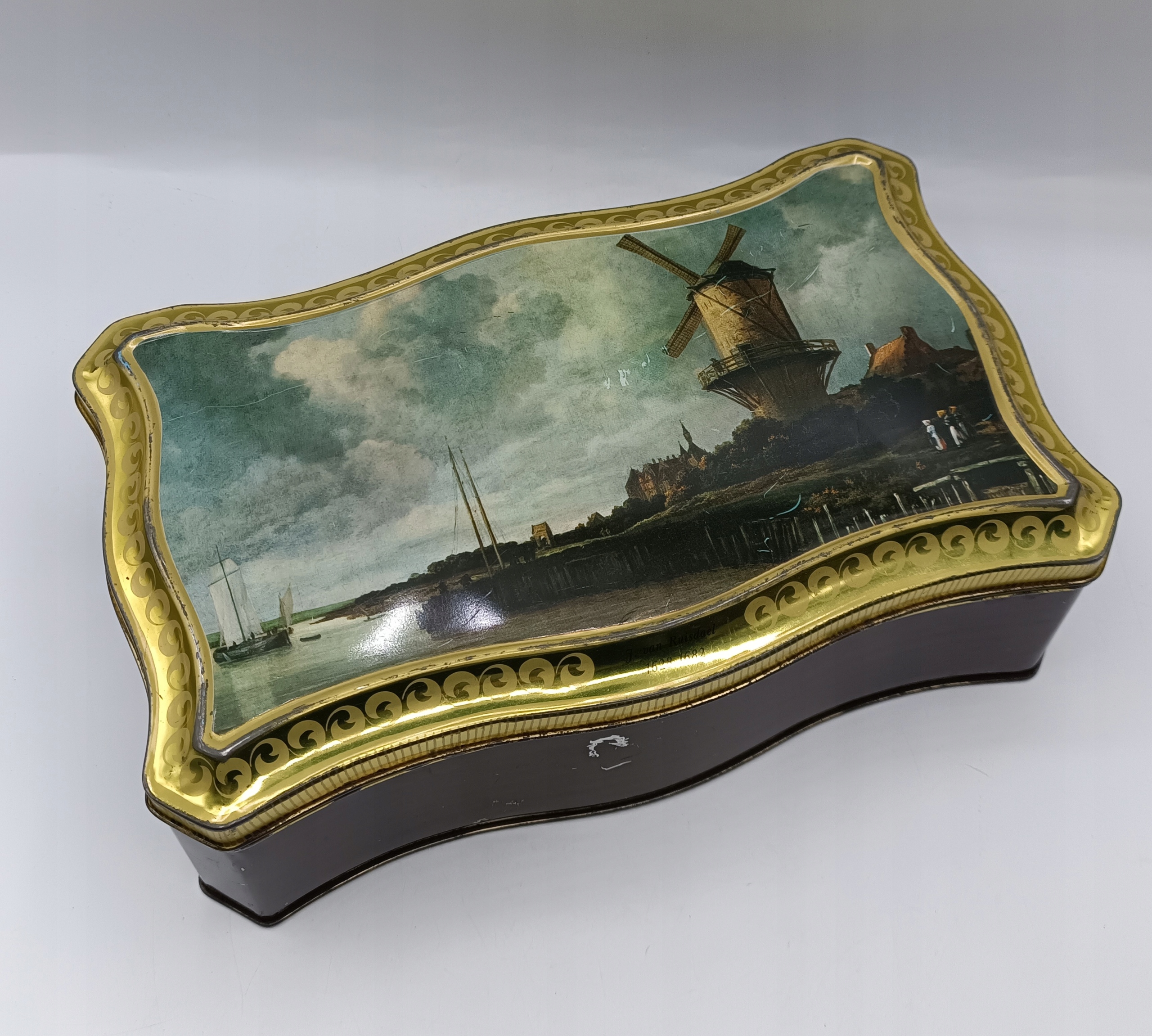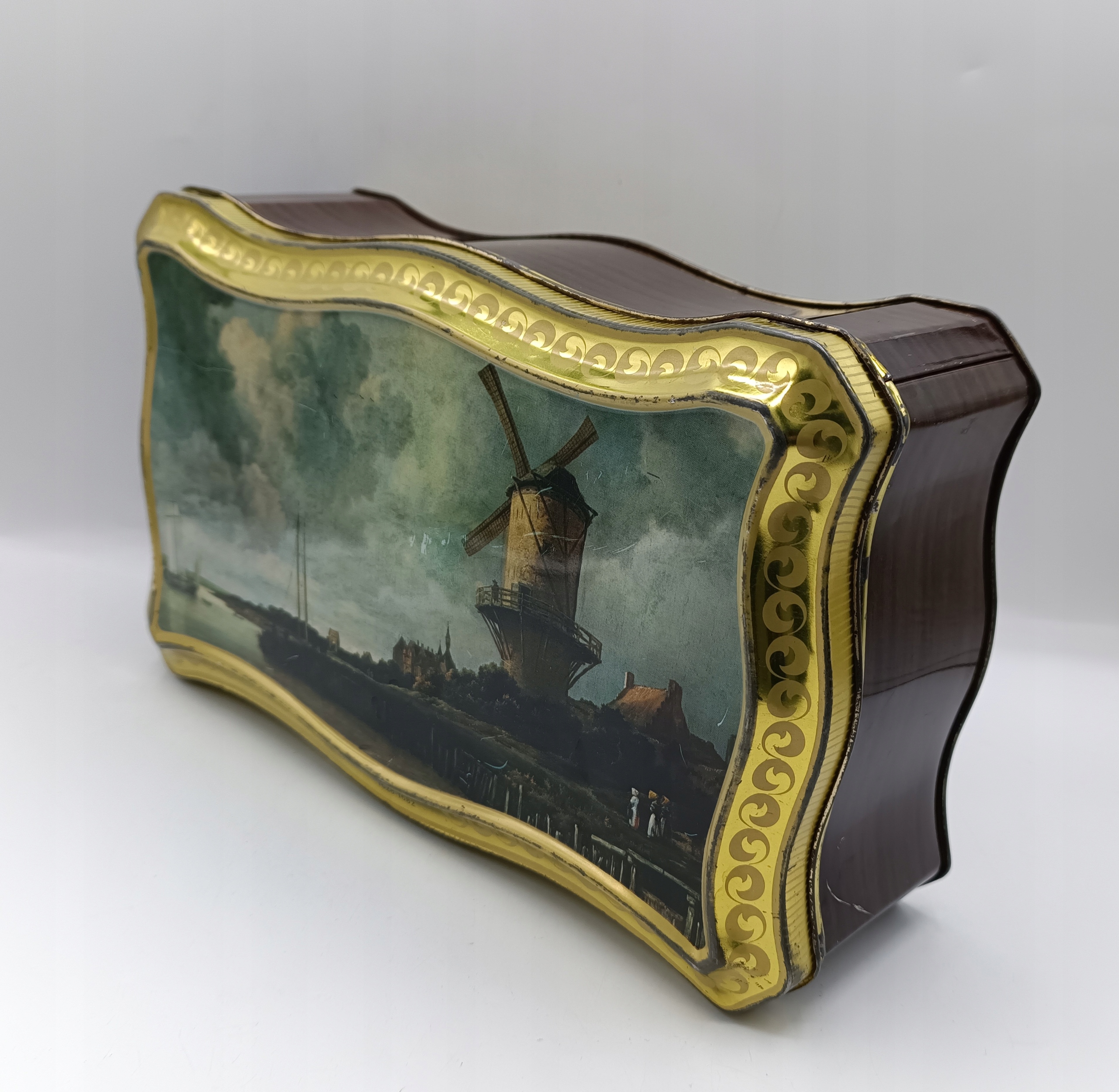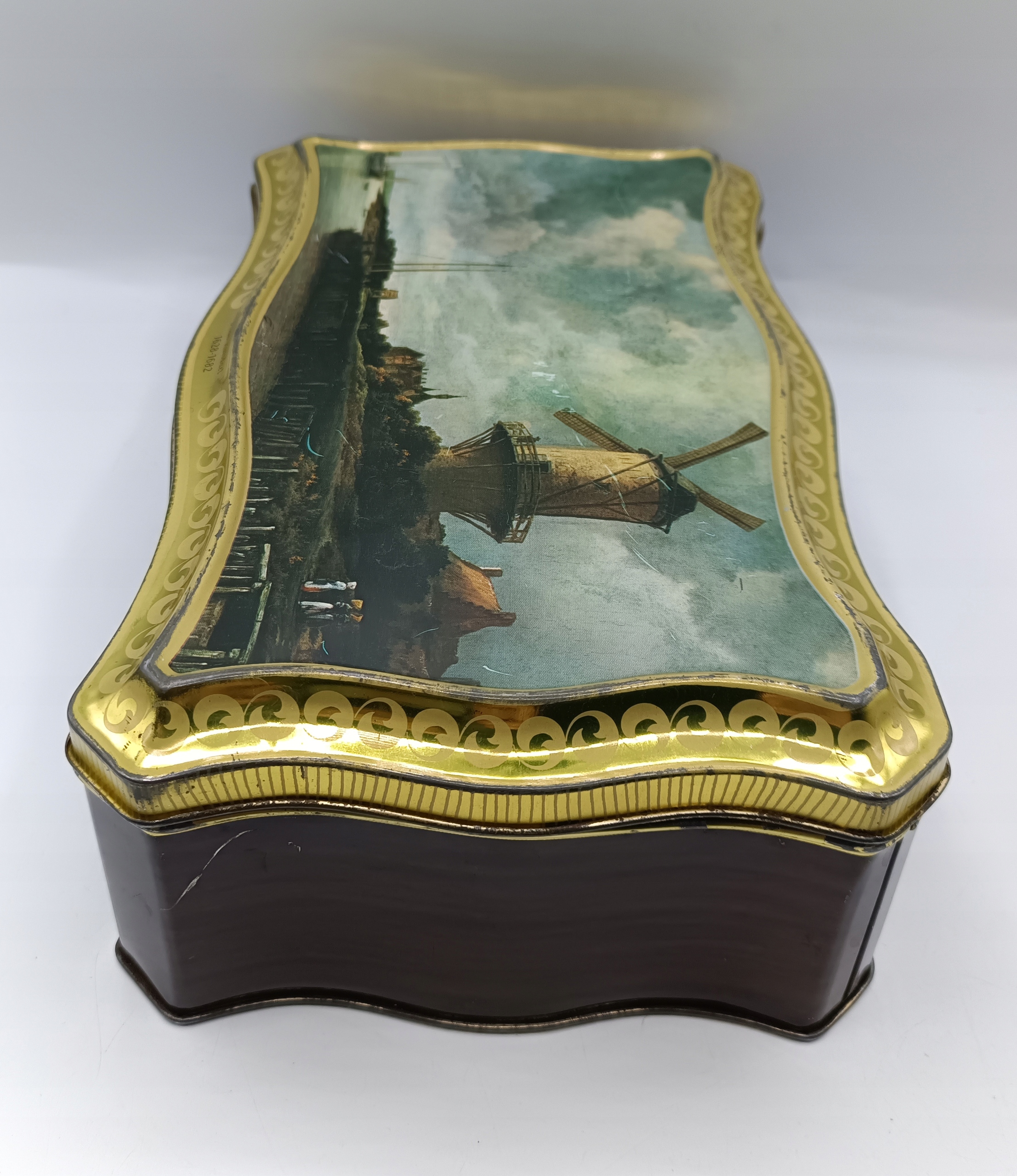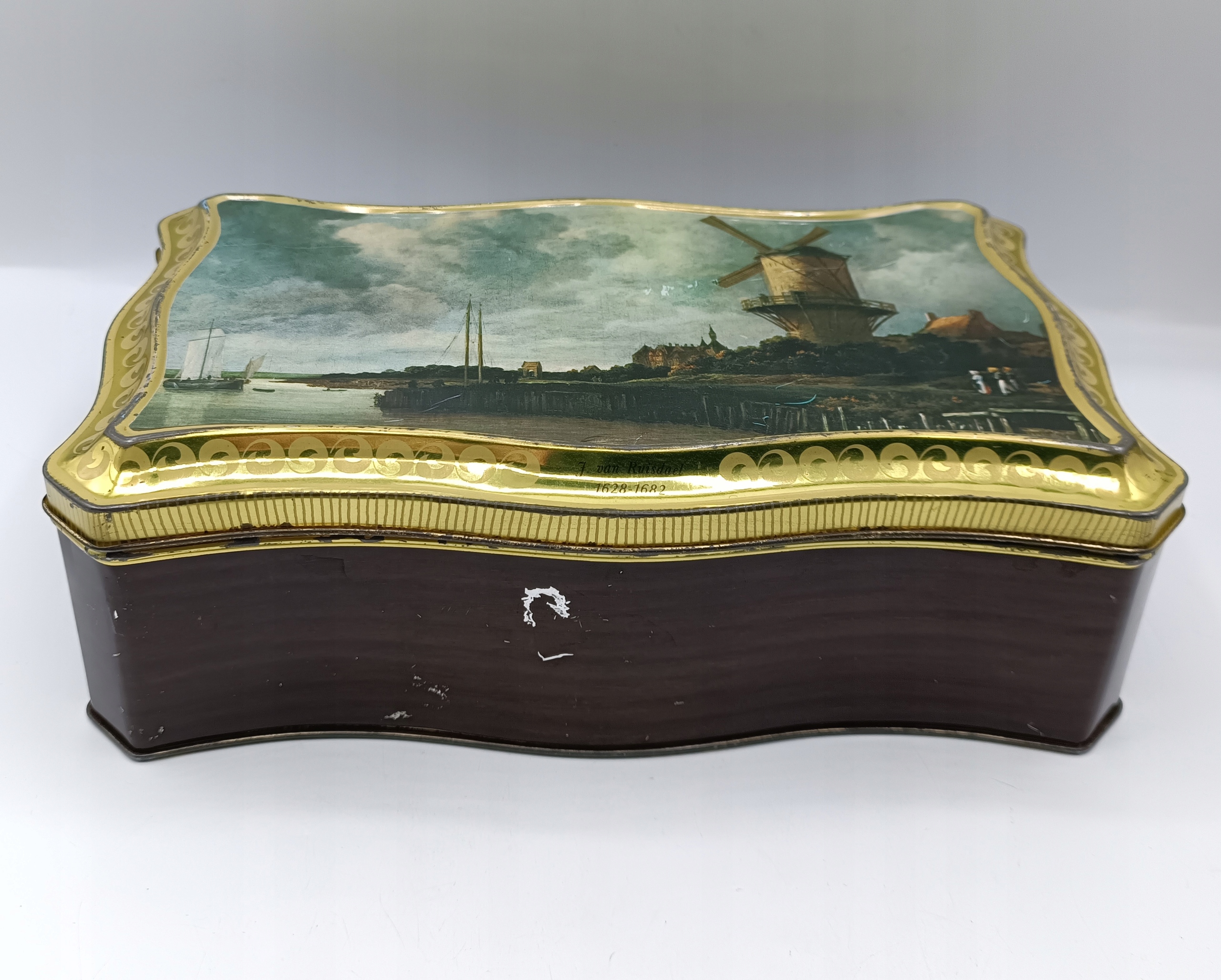 Металлическая винтажная банка с красивым пейзажем - 25 см.
