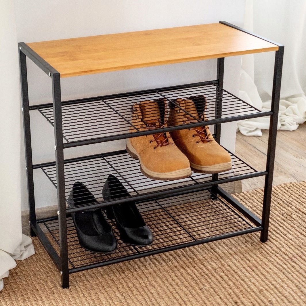 Металлическая стойка Большая полка для 4 горизонтальной обуви с деревянной полкой