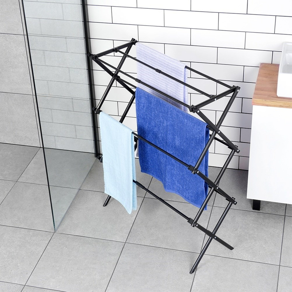 Металлическая прачечная сушилка. Черная вертикальная расширение 47-78x94 см.