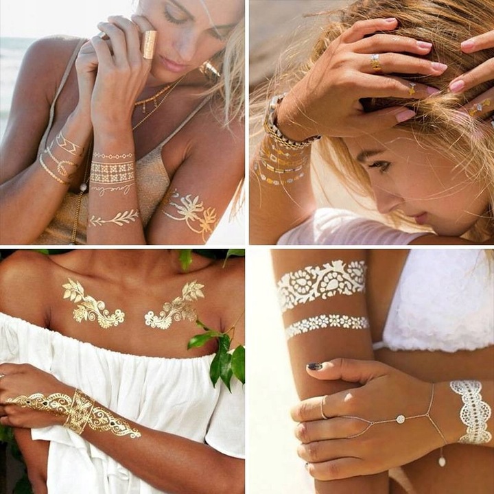 Металлическая татуировка золото серебро бохо набор 12 шт.