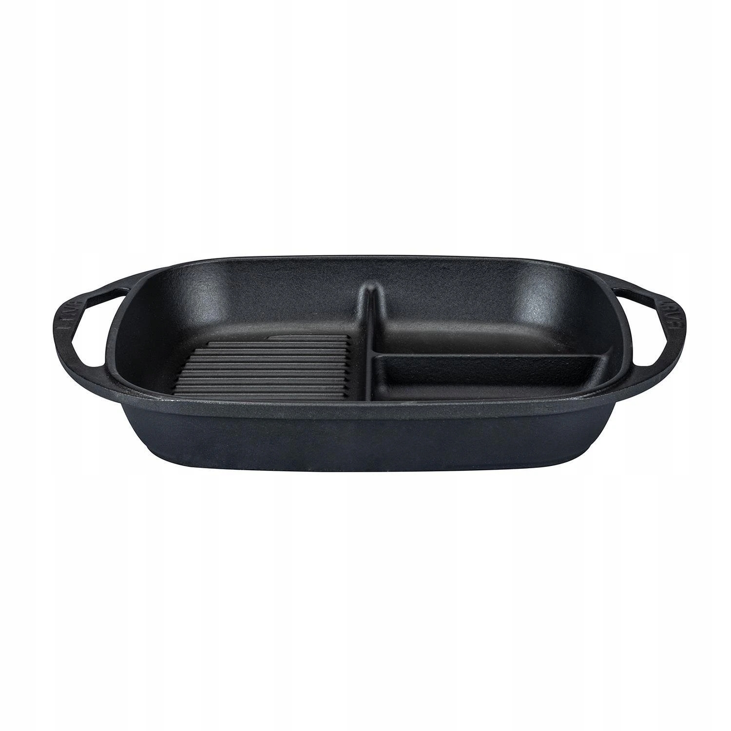 Воображение и творчество не имеют границ. Эта практичная чугунная сковорода разделена на три зоны (2 гладкие поверхности, 1 гриль), благодаря чему вы можете одновременно готовить фасоль, яйца или ветчину и бекон. Чугунная сковорода размером 26х30 см изготовлена из высококачественного чугуна, который действительно прочен, отлично проводит тепло, устойчив к коррозии, царапинам и сколам. Варочную панель можно использовать на всех типах грилей и плит, включая индукционную, а также пригодна для запекания в духовке, что делает ее практичным помощником на вашей кухне. Благодаря отличным термическим свойствам чугуна, подавать еду можно прямо с плиты, и она долго остается теплой. Чугунная посуда пользуется популярностью у поваров, поскольку хорошо держит тепло и практически небьется.