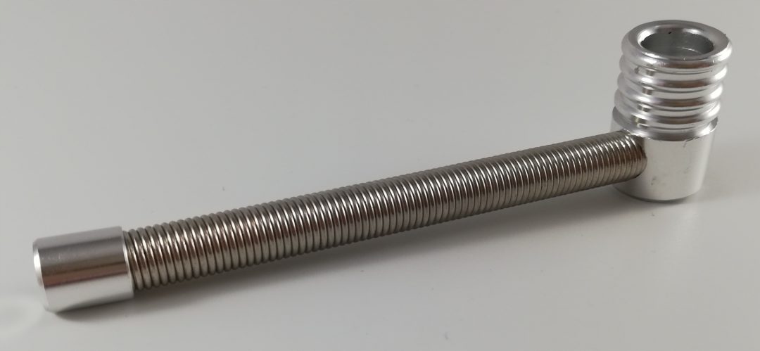 Предложение распространяется на небольшую практичную трубку, видимую на фотографиях. Он сделан из металла и сделан прочно. Средняя часть гибкая и может быть согнута. Трубка маленькая и удобная, поэтому ее можно брать с собой куда угодно. Он легко поместится в вашем кармане. Длина ствола 10 см.