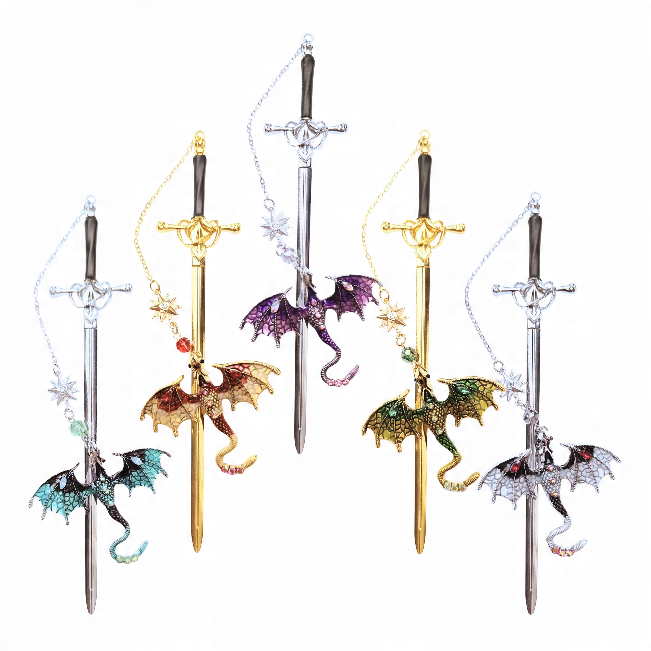 Металлическая вкладка с драконом и мечом Четвертое крыло синего дракона