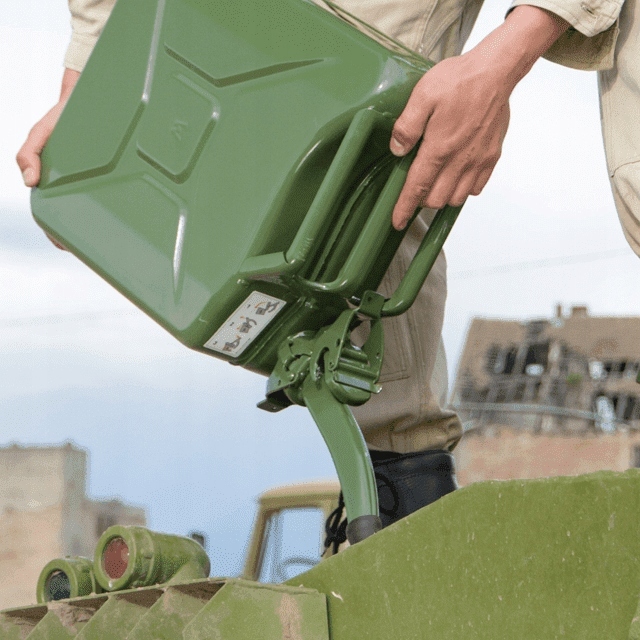 Металева воронка, прикріплена до каністри палива