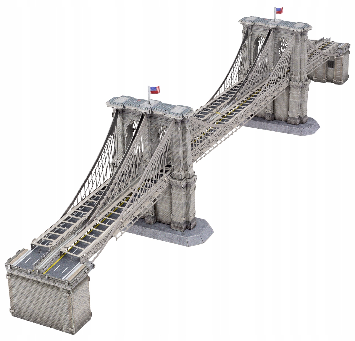 Строительство Бруклинского моста было начато 3 января 1870 года и завершено 24 мая 1883 года. Его стоимость составила около 15 миллионов долларов. Во время строительства погибло 27 человек. Модель Бруклинского моста ICONX — это усовершенствованный набор для моделирования, для сборки которого требуются такие инструменты, как кусачки и пинцеты. В комплект входят точно вырезанные стальные элементы и иллюстрированная инструкция, все упаковано в конверт размером 23,5 х 12,8 х 0,3 см. Моделирование с использованием этих моделей набирает популярность, привлекая как новичков, так и опытных коллекционеров.