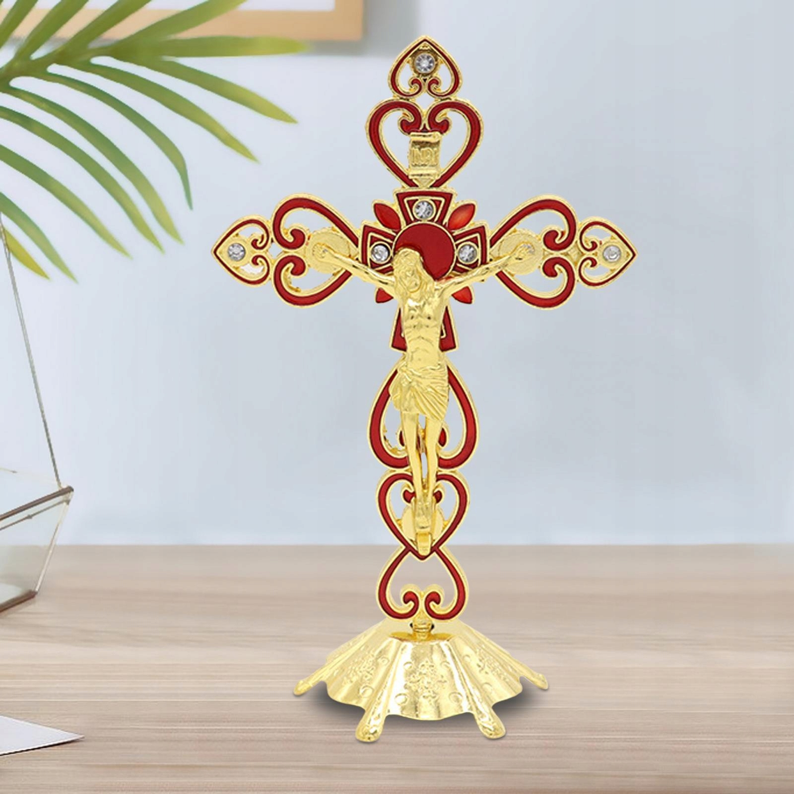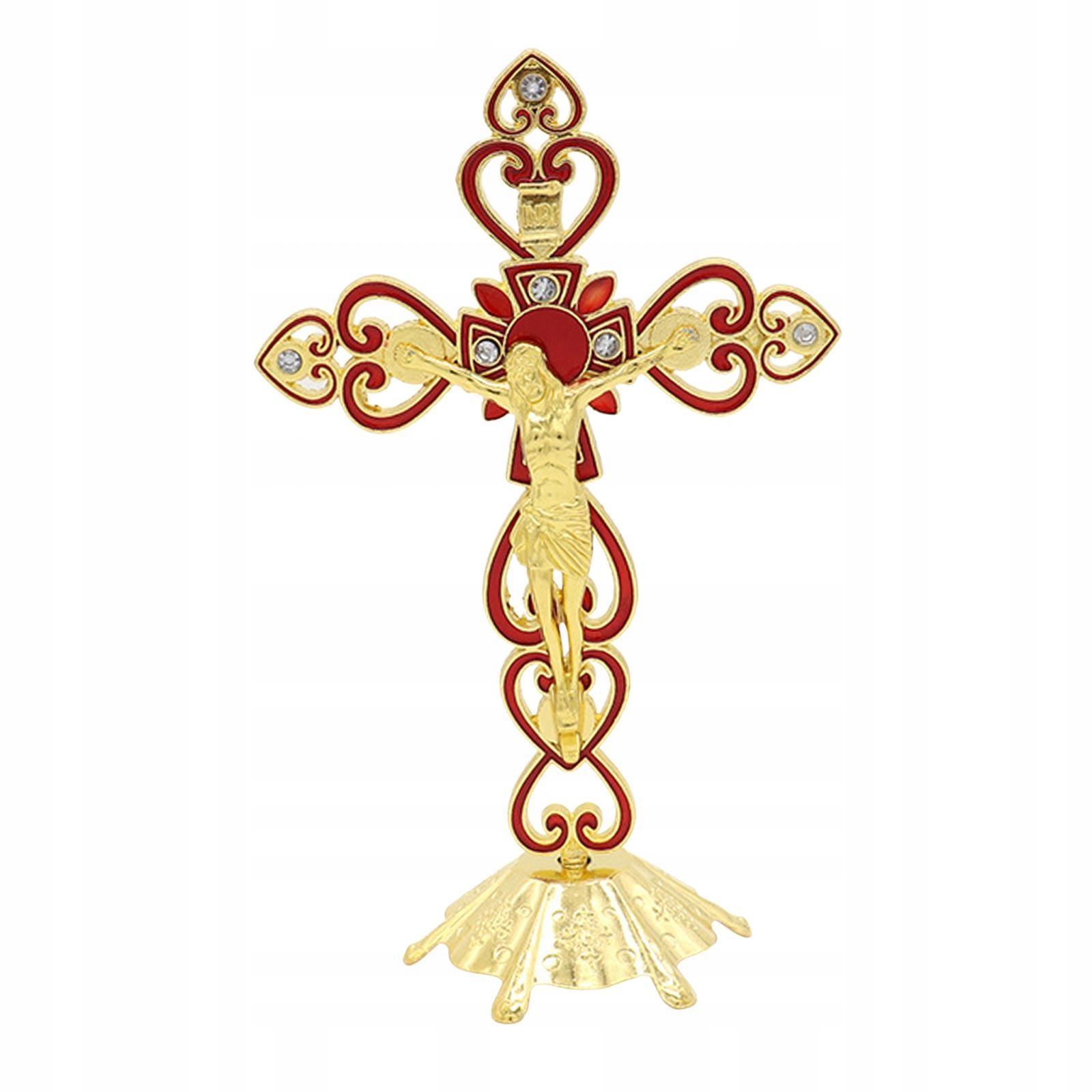 Металлическое декоративное распятие, стоячий крест, христианское украшение для стола, портативное, красное