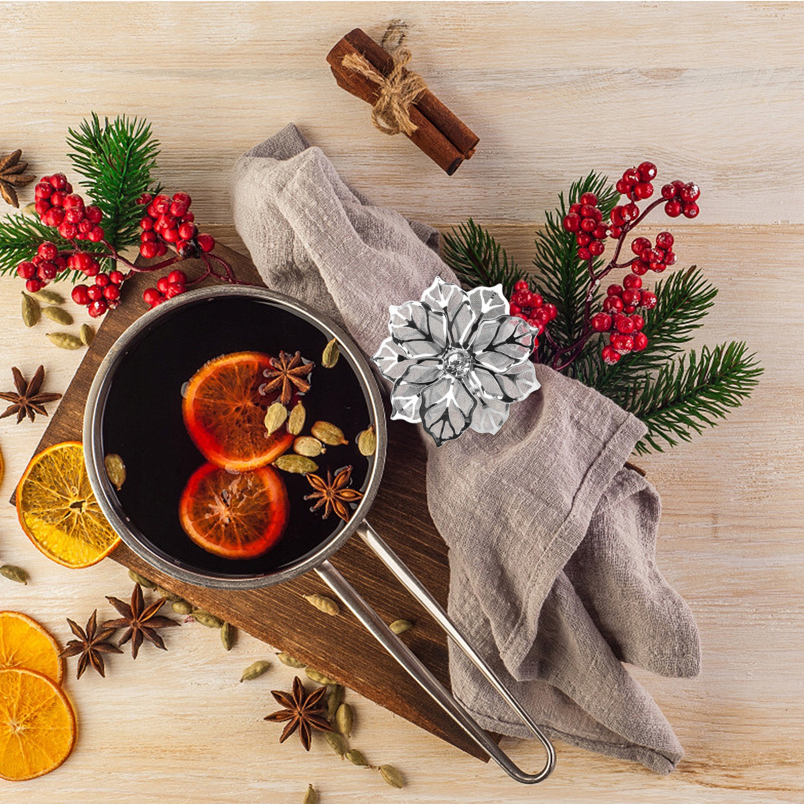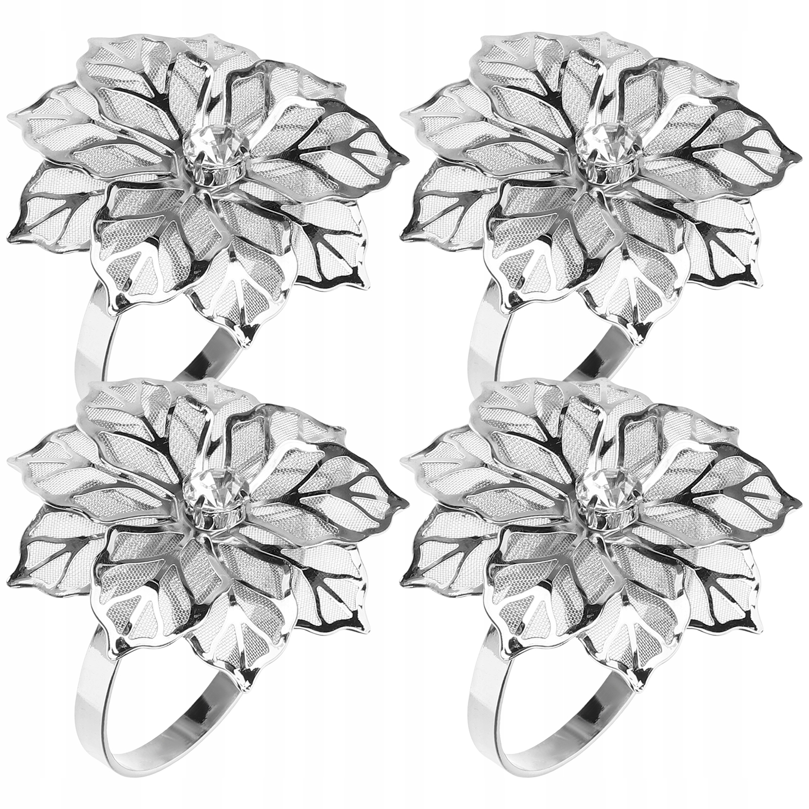 Подставка для салфеток с цветочным рисунком изготовлена из высококачественной нержавеющей стали и украшена сверкающими искусственными кристаллами.