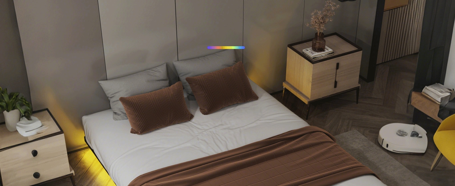 Создать безрезультатные ночи благодаря этой 4,9-метровой светодиодной полосе света. Регулировка с использованием приложения или радиоэтаниста RF - предлагая бесчисленные цвета, уровни яркости и динамические эффекты освещения.