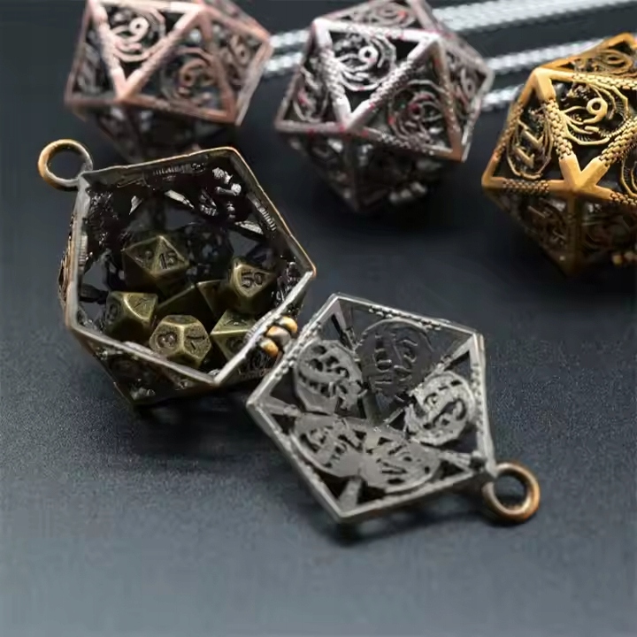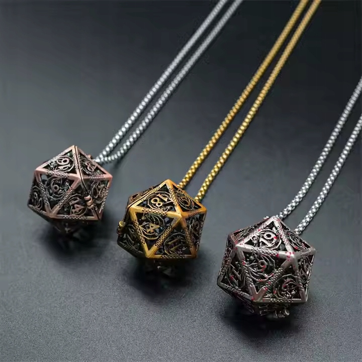Колье K20 — уникальный аксессуар, сочетающий в себе функциональность и элегантность, становящийся идеальным выбором для каждого поклонника ролевых игр. Подвешенное на тонкой цепочке металлическое ожерелье в форме классических кубиков К20 не только привлекает внимание, но и содержит место для мини-набора кубиков для ролевых игр. Прочная конструкция и уникальный дизайн делают колье не только практичным, но и стильным аксессуаром, прекрасно отражающим страсть к ролевым играм. Это элегантный способ всегда иметь при себе набор игральных костей.