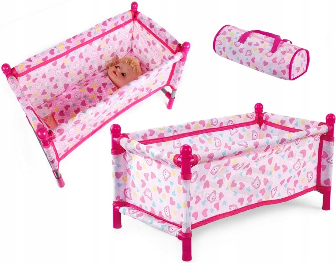 Переносная металлическая складная легкая кукольная кроватка доставит массу удовольствия каждой девочке.