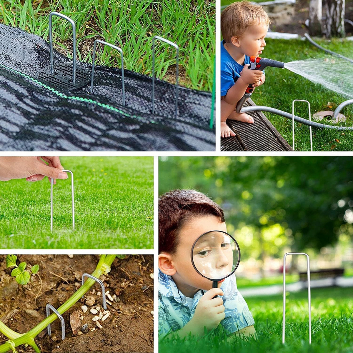 Грей -гвозди идеально подходят для фиксации полиэтиленовой фольги, гербицидных тканей и линий заземления. Он идеально подходит для крепления газонов, тканей, искусственной травы, гербицидных барьеров, внешних проводов, водонепроницаемых тканей, садовых тканей, змей и т. Д.