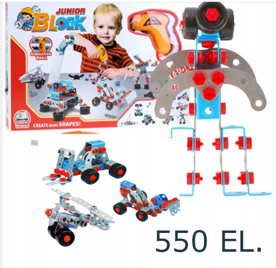 Новые креативные многодетальные кубики для юных конструкторов. Этот удивительный набор из 550 деталей позволит каждому построить удивительные здания, транспортные средства и сооружения. Что необходимо, так это желание, энтузиазм и безграничное воображение. Основой конструкции является система отверстий и отверстий, размещенных в основных элементах конструкции, к которым мы прикручиваем последующие детали. Преимуществом этого набора является простая сборка и разборка построенных моделей. Этот богатый набор дает уникальную возможность развивать пространственное воображение, мануальные навыки и координацию движений. Через игру ребенок имеет возможность научиться логическому мышлению, использованию предметов и сопоставлению их друг с другом. Для родителей это незабываемые моменты, которые они могут провести, весело проводя время со своими детьми.