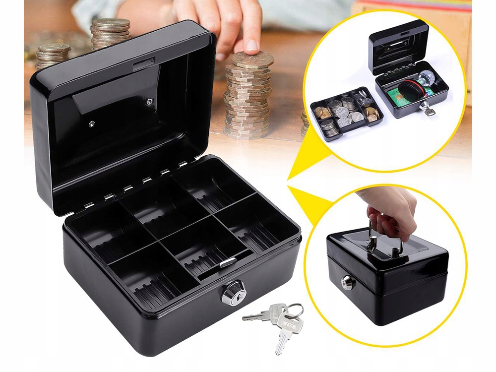 МЕТАЛЛИЧЕСКАЯ КАССЕТА ДЛЯ ДЕНЕЖНЫХ МОНЕТОВ БАНКНОТ ДОКУМЕНТЫ СЕЙФ + КЛЮЧНИЦА