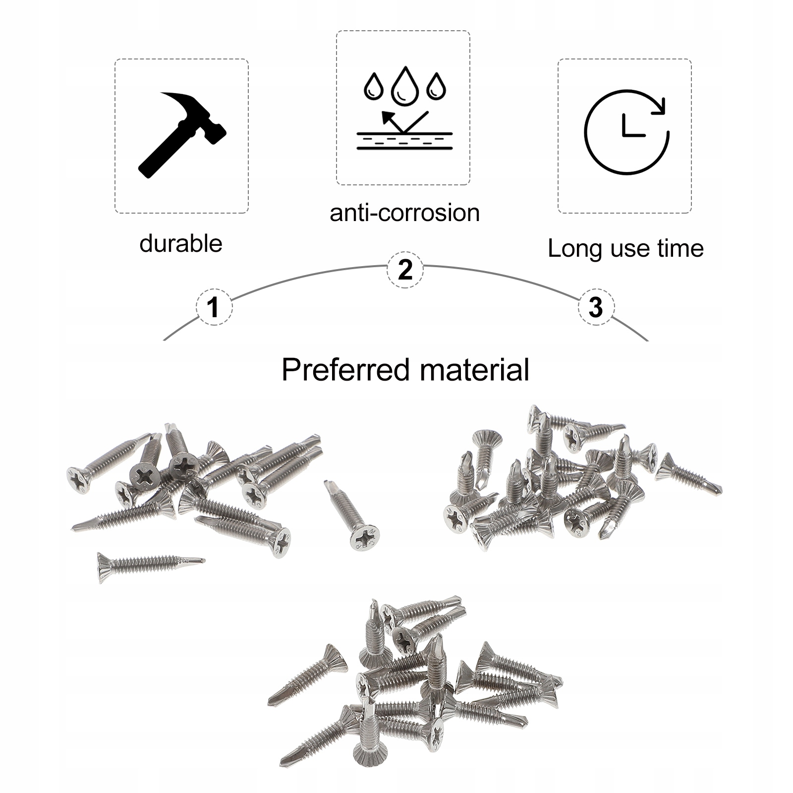 ✅t Набор винтов с самостоятельными винтами изготовлен из материала высочайшего качества, который выдержит долгосрочное использование. Он содержит материал из нержавеющей стали, который имеет высокую долговечность, нелегко деформировать. Хорошее качество, обеспечивает практичность