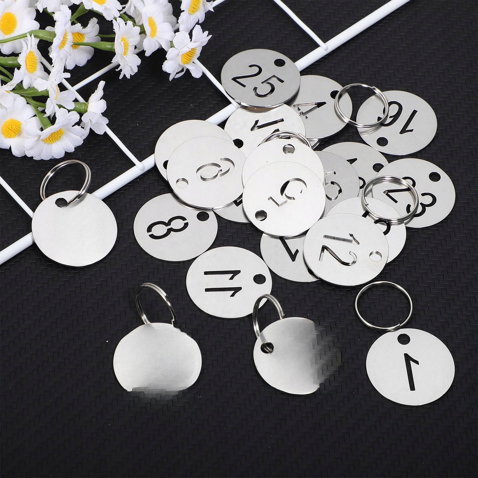 🌈te пронумерованные теги с кольцами предлагают удобное и эффективное идентификационное решение. Их можно повесить на чемодан багажа, шкаф, кольцо с ключом и многие другие предметы. Они также подходят для небольших компаний. Изготовленные из нержавеющей стали, они являются долговечными и многоразовыми, простыми в безупречных условиях.