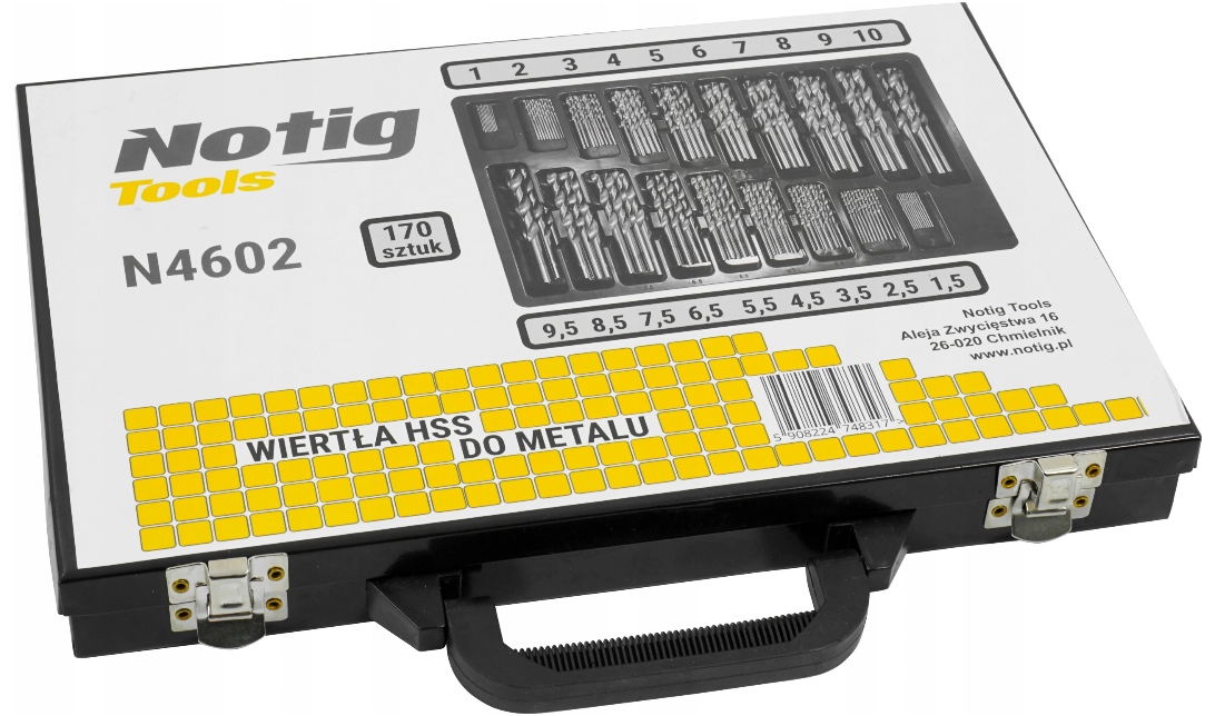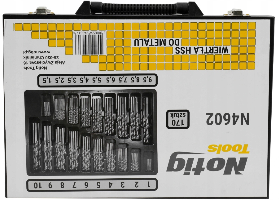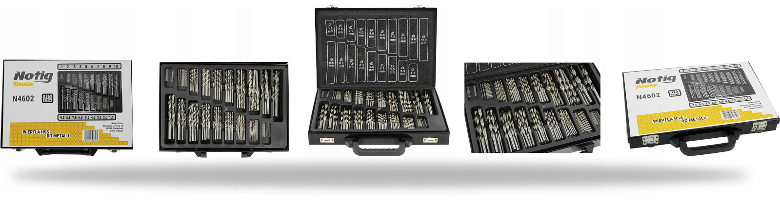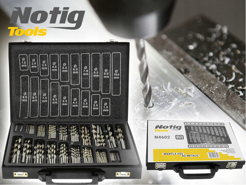 Набор металлических тренировок 170 HSS Notig Tools h1> Набор содержит 19 различных размеров: h1>