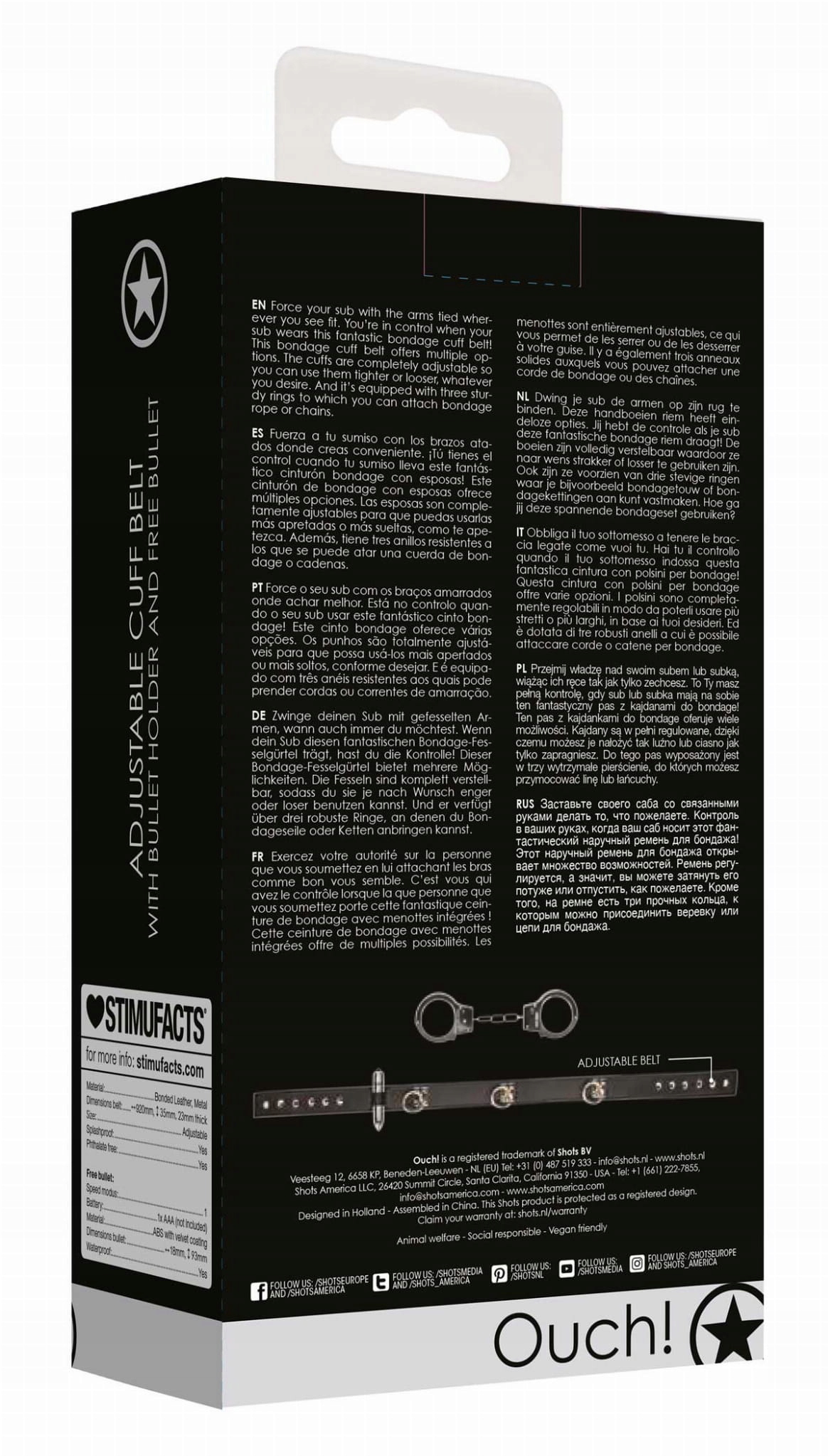 Наручники полностью регулируются, поэтому вы можете применять их настолько свободно или плотно, как хотите, ремень оснащен тремя прочными кольцами, к которым вы можете прикрепить веревку или цепи