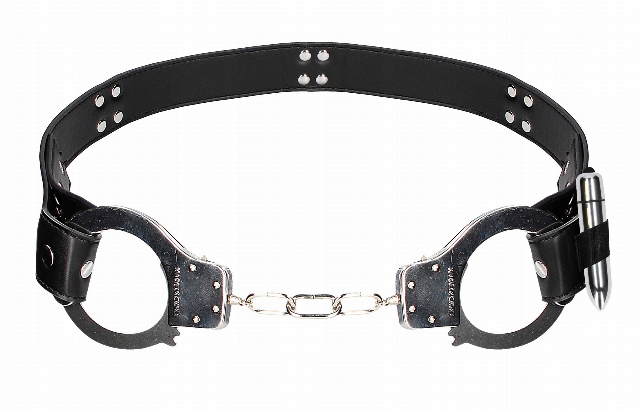 Металлические наручники с ремнем + мини -вибратор