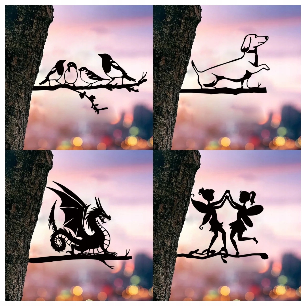 Металлические птицы/собаки/драконы/фея на ветвях, стальные силуэт металлические птицы
