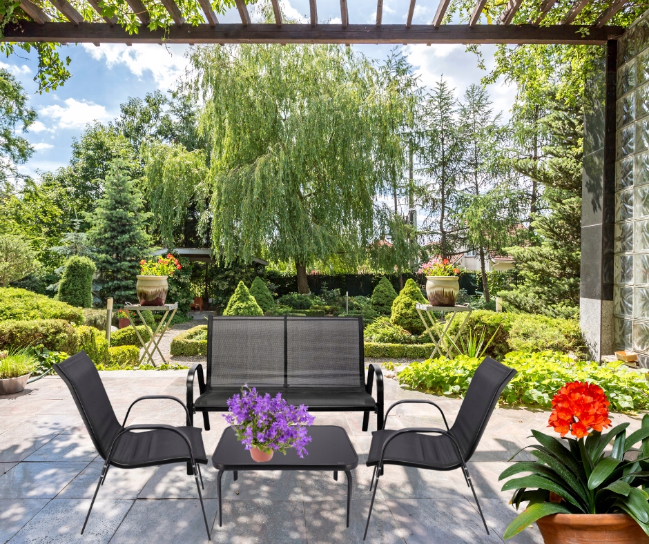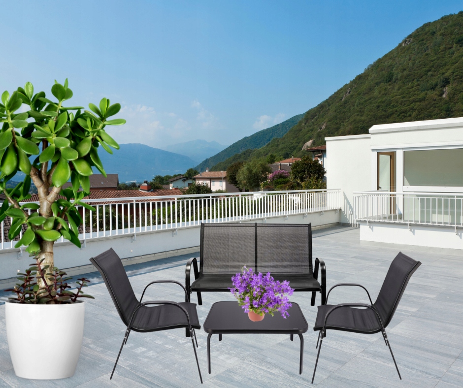 Металлическая садовая мебель на балконе садовой террасы Пейпи