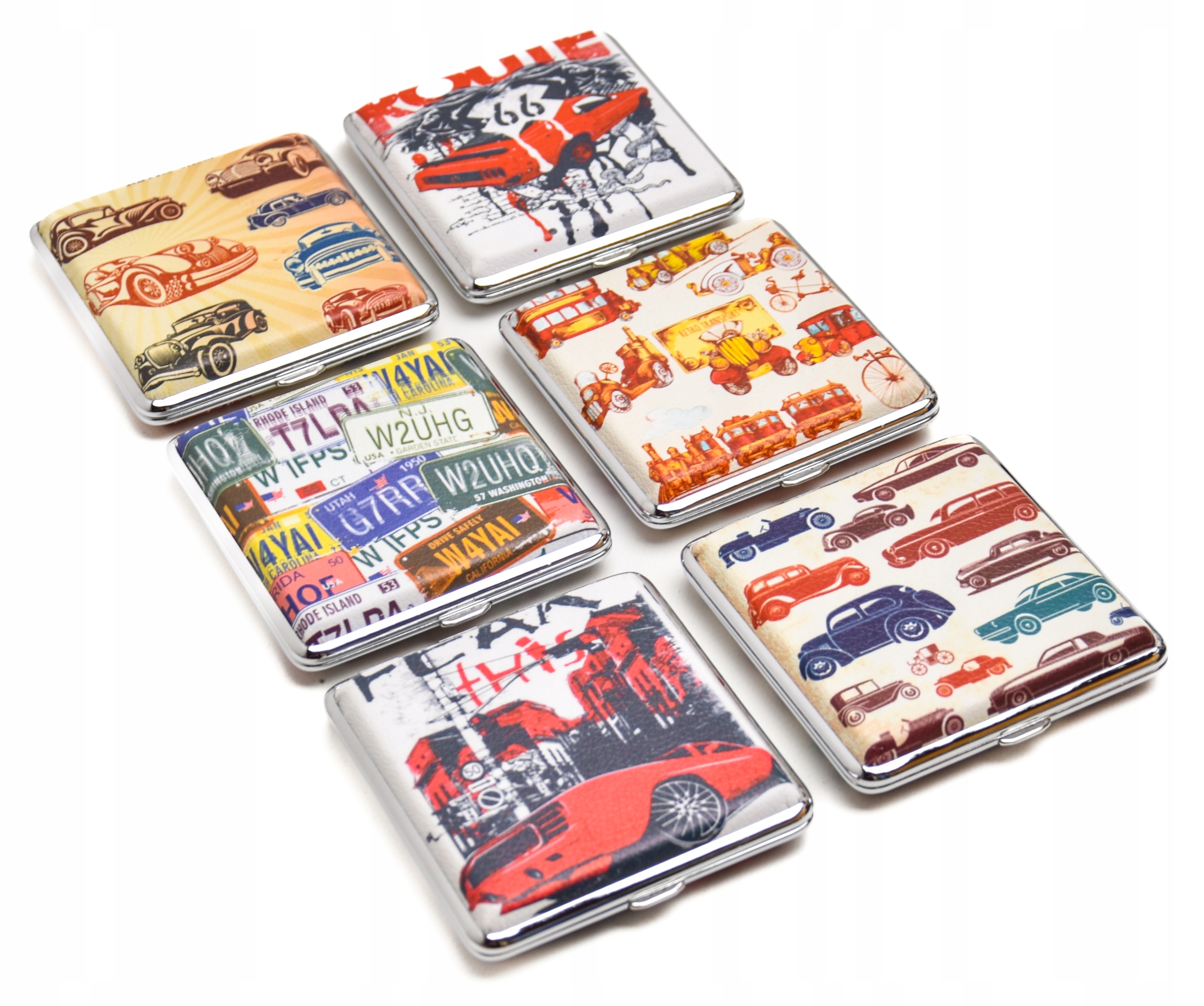 Металлическая сигаретная корпус, покрытый эко -лизером с автомобильной темой