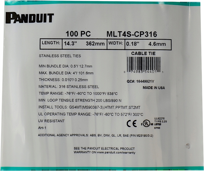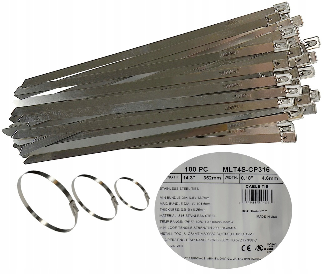 Стяжки металлические PANDUIT AISI 316, ширина 4,6 мм, длина 362 мм, 100 шт.