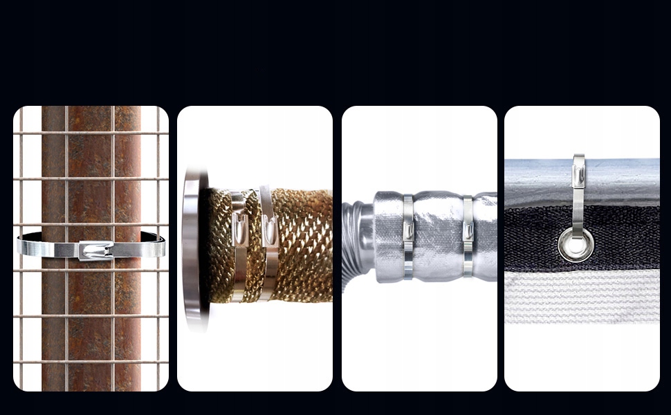 металлические полосы зажима 4.6x100. AISI 304 Нестандартная сталь зажимы, прочные, многофункциональные, самообслуживающие, для машин, транспортных средств, обертывания выхлопных выхлопных газов, ферм, труб, крыш, кабелей и внешних заборов. Эти прочные полосы в 4 раза сильнее, чем обычные пластиковые зажимные полосы. Эти зажимы из нержавеющей стали устойчивы к высоким температурам, морозам, ржавчине и коррозии. В отличие от традиционных пластиковых полос зажима, эти прочные металлические зажимные полосы не будут разрушены под воздействием ультрафиолетового излучения на солнце, таких как пластиковые пластиковые зажимные полосы.