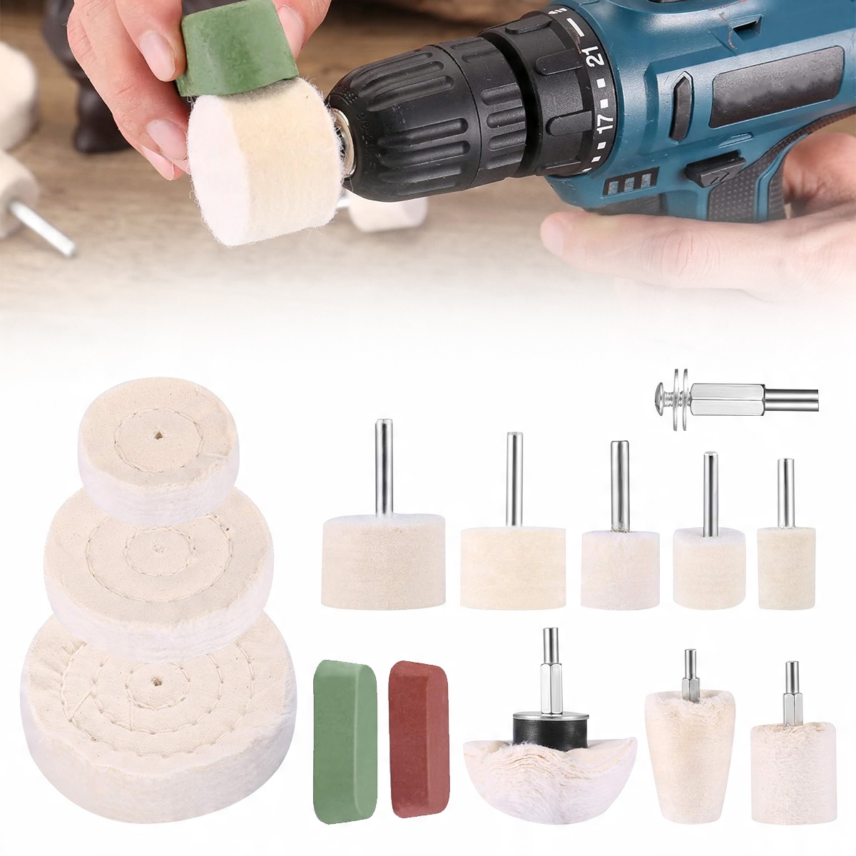 насасывание из 14 предметов, полировочный щит для тренировки аккумулятора, 11 штук. Набор бребной хлопковой бархатной полировочной колодки полировочной колесной круга полировочной площадки с 2 шт. Польская паста + 1 шт. Адаптер бурового отверстия для металла и алюминия h1>