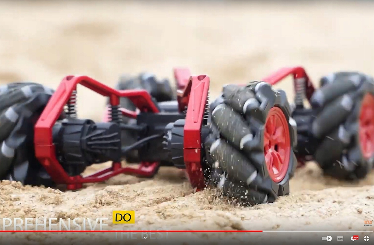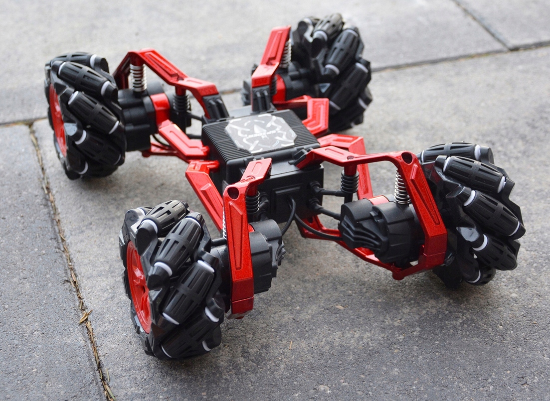 Колеса изготовлены из достаточно скользкого пластика, благодаря чему машину заносит в любую сторону. Он может даже ехать боком, не поворачивая колеса.