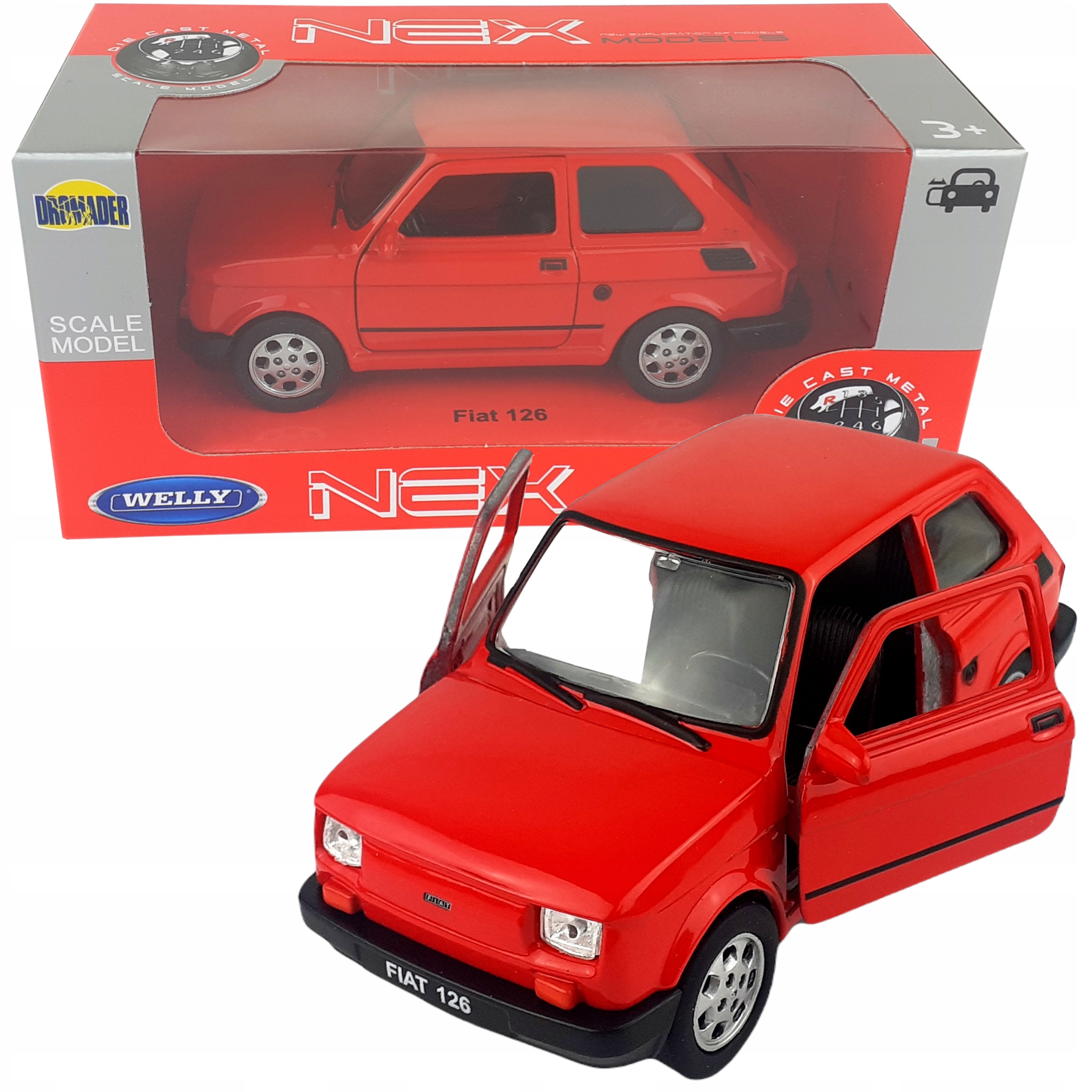 Модель FIAT 126 выполнена из металлических и пластиковых элементов в масштабе 1:34-39.