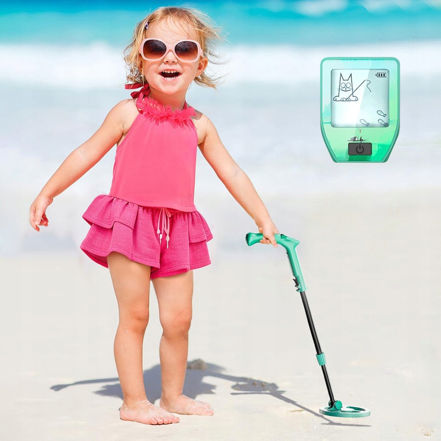 🪙 ЖК -экран и звуковой дисплей: дисплей нашего металлоискателя был разработан с очаровательной анимацией рыбной рыбной кошки. Если вы посмотрите, рыба на дисплее будет продолжать появляться. Когда детектор находит свою цель, начинается рыба. В этот момент небольшая рыба в левом верхнем углу загорается и издает звук. Очень яркий и интересный. Пусть дети наслаждаются удовольствием, обнаруживая!